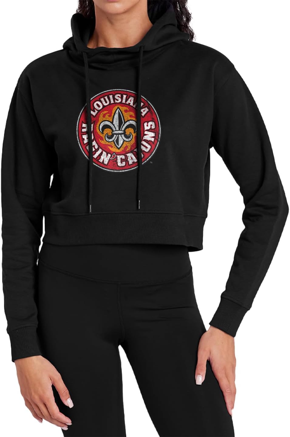 Elevate your game-day and everyday look with our Women’s Cropped Hooded Sweatshirt, a perfect blend of style, comfort, and school spirit. Crafted for campus fashion, this hoodie features your favorite team’s logo and a trendy cropped fit that hits just above the waist, making it perfect for pairing with high-waisted jeans or leggings. Designed with a durable cotton-polyester blend, this sweatshirt offers lightweight, breathable comfort that’s ideal for layering or wearing solo throughout any season. It’s machine washable for easy care, ensuring it remains a staple in your wardrobe. The cozy drawstring hood and ribbed cuffs add an extra touch of warmth and style, making this cropped hoodie the perfect choice whether you’re heading to class, cheering at a football tailgate, basketball game, or catching up with friends. Delight the college student, alumni, or sports enthusiast in your life with a gift that combines comfort, practicality, and fashion. It’s a thoughtful present for birthdays, holidays, graduations, or any special occasion, giving them a way to proudly showcase their school pride. Explore our extensive selection of designs, each one crafted through our unique printing process. Our fan-favored imagery adds unique detailing to every sweatshirt. Each piece is printed on demand in our high-tech US-based facility, ensuring a quality finish for each fan and trendsetter.
