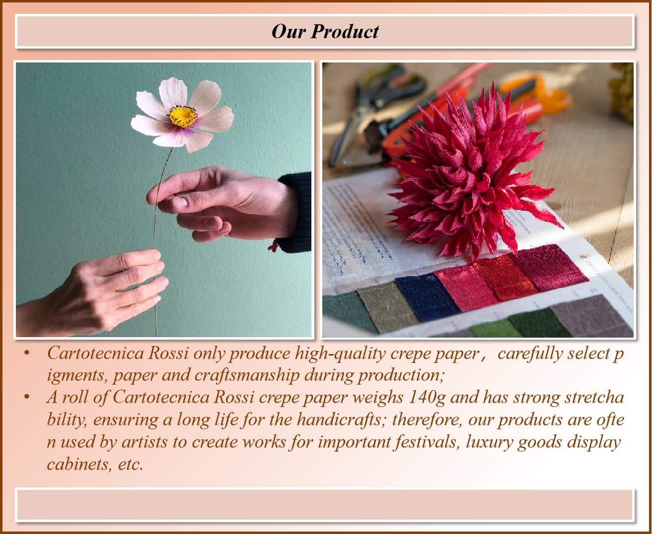 | Recommended Uses For Product | Make paper flowers and anniversary and holiday decorations |