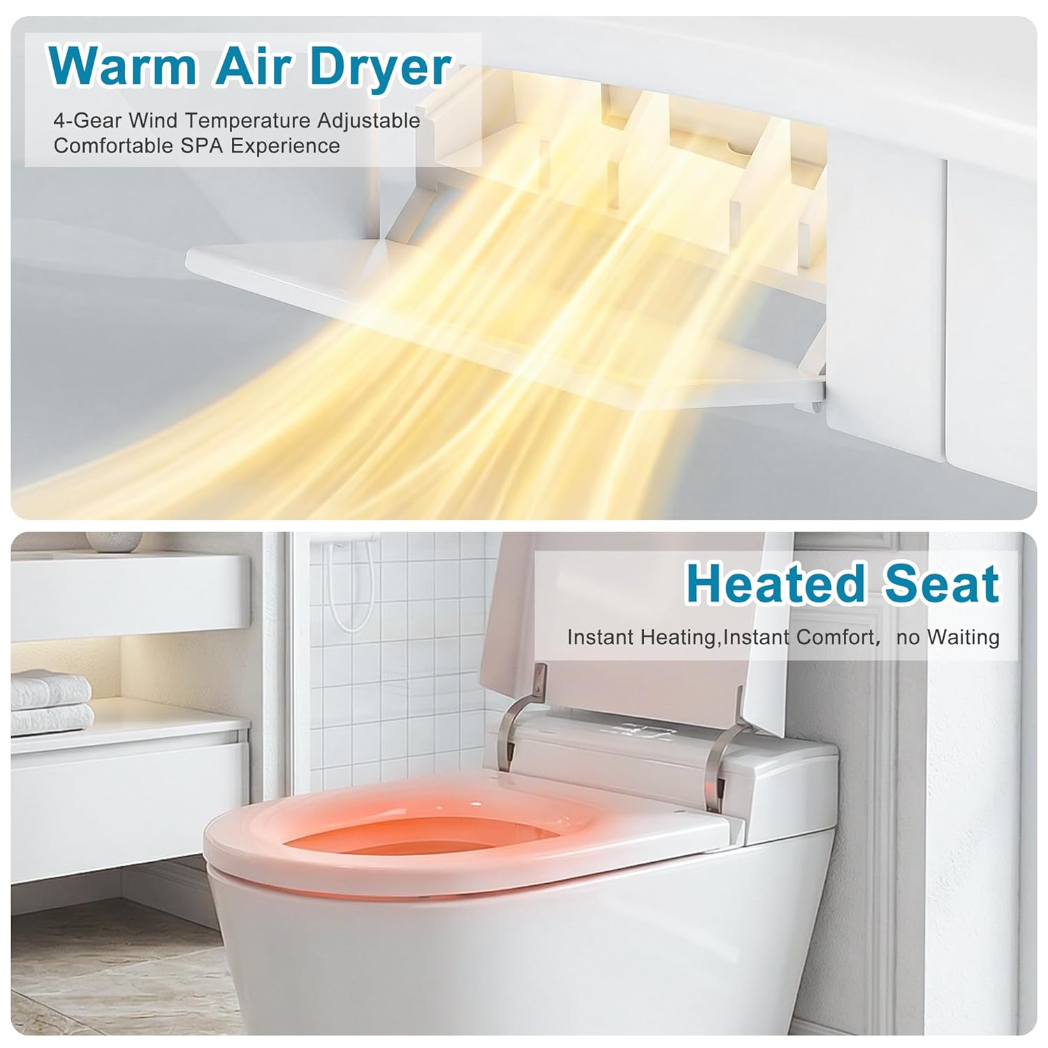 ✨ The Casaphoria Touch Smart Toilet: Intelligent Luxury, Effortless Wellness ✨A new era of bathroom elegance that greets you, comforts you, and cares for you. Experience a seamless, touch‑free environment,blending powerful performance with spa‑grade cleanliness in a design that thoughtfully supports every body.Key Features & Benefits✅ AUTO‑OPENING LID:The lid greets you as you approach — no fumbling in the dark or touching germy surfaces.✅ POWER THAT NEVER QUITS:Engineered flush system removes even heavy waste in one go, with dual‑option water conservation.✅ SPA‑GRADE BIDET & DRYER:Self‑cleaning stainless steel nozzle with multiple modes (posterior, feminine, massage) plus warm air drying for total freshness.✅ FULLY CUSTOMIZABLE COMFORT:3‑level heated seat and all functions — including water temperature, pressure, and drying — controlled via included remote.✅ ADA‑COMPLIANT HEIGHT:Comfort‑height design makes sitting down and standing up easier for all, especially tender knees and aging joints.Technical SpecificationsFlush System:Ultra‑powerful pump, dual‑flush (0.15GPF / 0.75GPF)Bidet: Self‑cleaning stainless steel nozzle, multiple wash modes, adjustable temperature & pressureSeat:3‑level heated seat, ADA comfort heightControl:Included remote control, HD LED display (shows water/seat temp)Hygiene Features:Auto open/close lid, warm air dryer, auto deodorization (if equipped)Certifications:ADA compliant, meets EPA water conservation standardsIdeal For• Creating a luxurious, hotel‑style primary bathroom• Enhancing accessibility and supporting comfortable aging in place• Homeowners seeking a hygienic, touch‑free bathroom experience• Anyone who values personalized comfort, powerful performance, and spa‑like wellness daily🚽 READY TO ELEVATE YOUR ESSENTIAL ROUTINE?P.S.The soft‑glow LED display isn’t just informative—it provides gentle nighttime illumination, making those late‑night visits safe and seamless without turning on harsh lights. 💡Welcome to intelligent, intuitive bathroom wellness. The Casaphoria Touch Smart Toilet—where technology embraces you, comfort supports you, and cleanliness cares for you.