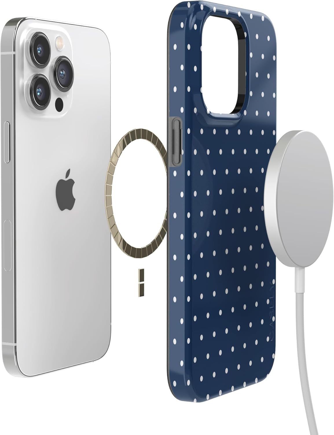 Classic, but never boring. The On the Dot Navy Polka Dot Case features a deep navy backdrop sprinkled with crisp white polka dots for a look that’s timeless, playful, and endlessly wearable. Clean spacing and high contrast give this pattern a polished feel that pairs just as easily with everyday neutrals as statement outfits. Designed for both style and protection, this case is available in multiple case types - including MagSafe-compatible options - so you can choose the level of protection and functionality that fits your life. Precision cutouts ensure a perfect fit for your device, while a slim profile keeps things sleek and pocket-friendly. Available for select iPhone, Samsung Galaxy, and Google Pixel devices. Choose your device and case type to get the perfect match. Looking to coordinate? Mix and match this polka dot favorite with other tech accessories across the collection for a cohesive, elevated setup.