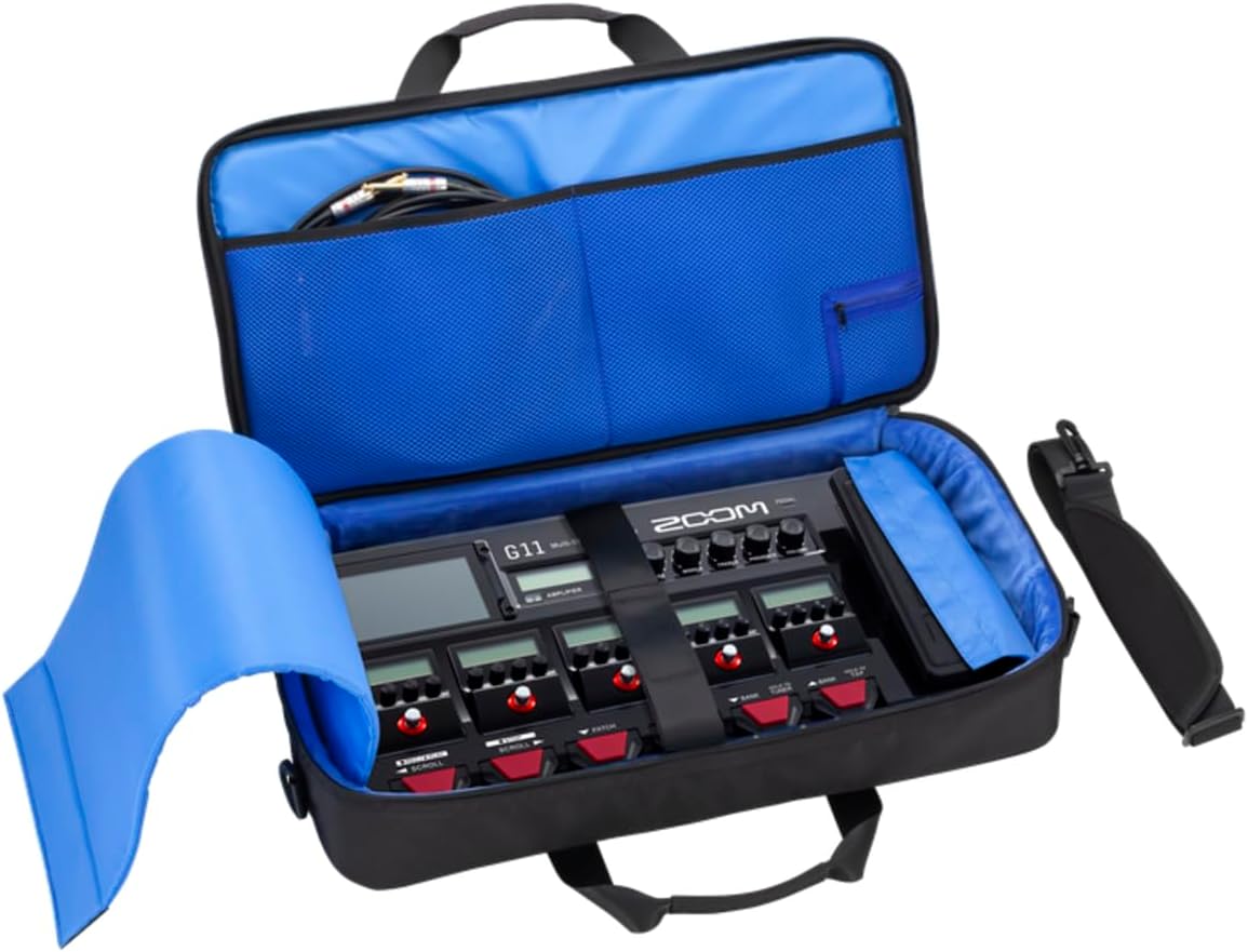 The CBG-11 is a lightweight and durable carrying bag that enhances the portability of the G11 multi-effects processor. You can store accessories such as AC adapters, cables, SD cards, etc. together with "G11" and carry them comfortably. The inside of the bag is equipped with a stretch band that fixes the G11 body and a cushion that protects it from scratches and impacts. It also comes with a padded shoulder strap to reduce the strain on your shoulders.