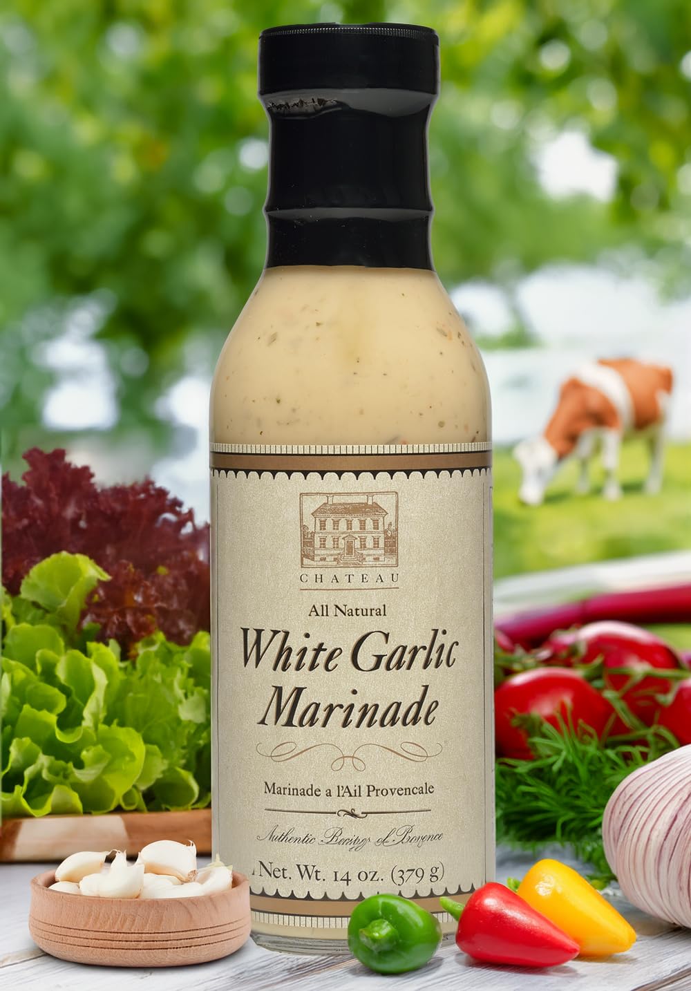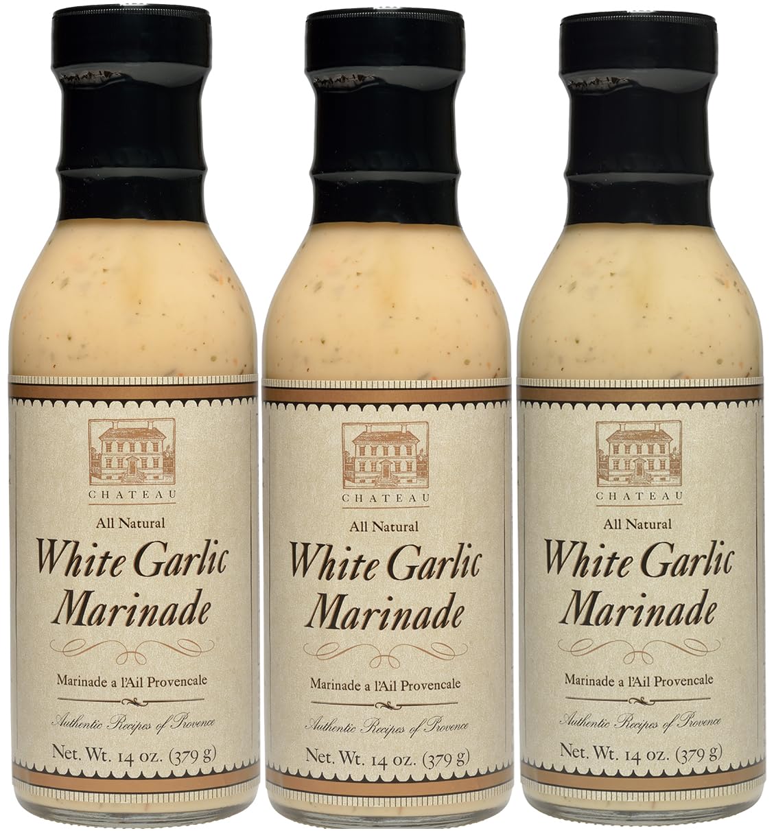 Chateau White Garlic Marinade is a culinary masterpiece that infuses your meals with the hearty flavors of garlic, reflecting the wonderful flavors of Provence and the South of France. Butchers and chefs alike swear by its ability to stay on meat, making it perfect for display counters and delicious dishes. Unlock the Rich Flavor Our marinade is a symphony of all-natural ingredients, including expeller-pressed canola oil, garlic, olive oil, bell pepper, and spices. You won't find any preservatives or gluten here – just pure, mouthwatering flavor. Versatility and Convenience: Use our White Garlic Marinade on chicken, fish, and seafood, whether you're pre-marinating for an enhanced taste or whipping up a meal at home. It's your key to achieving the ultimate garlic experience. The 14 oz Bottle: Perfect for home kitchens, our 14 oz bottle lets you indulge in Chateau's unique flavors whenever you desire. Explore the essence of the South of France at your own pace. Elevate your culinary creations with Chateau White Garlic Marinade. Join the ranks of those who appreciate the hearty garlic flavor and convenience of our 14 oz bottle. Order now and infuse your dishes with the essence of Provence and the South of France, right in your own kitchen. Chateau White Garlic Marinade is also available in 1 Gallon (128 ounce) bottles for butchers, restaurants, meat counters, and food-service customers.