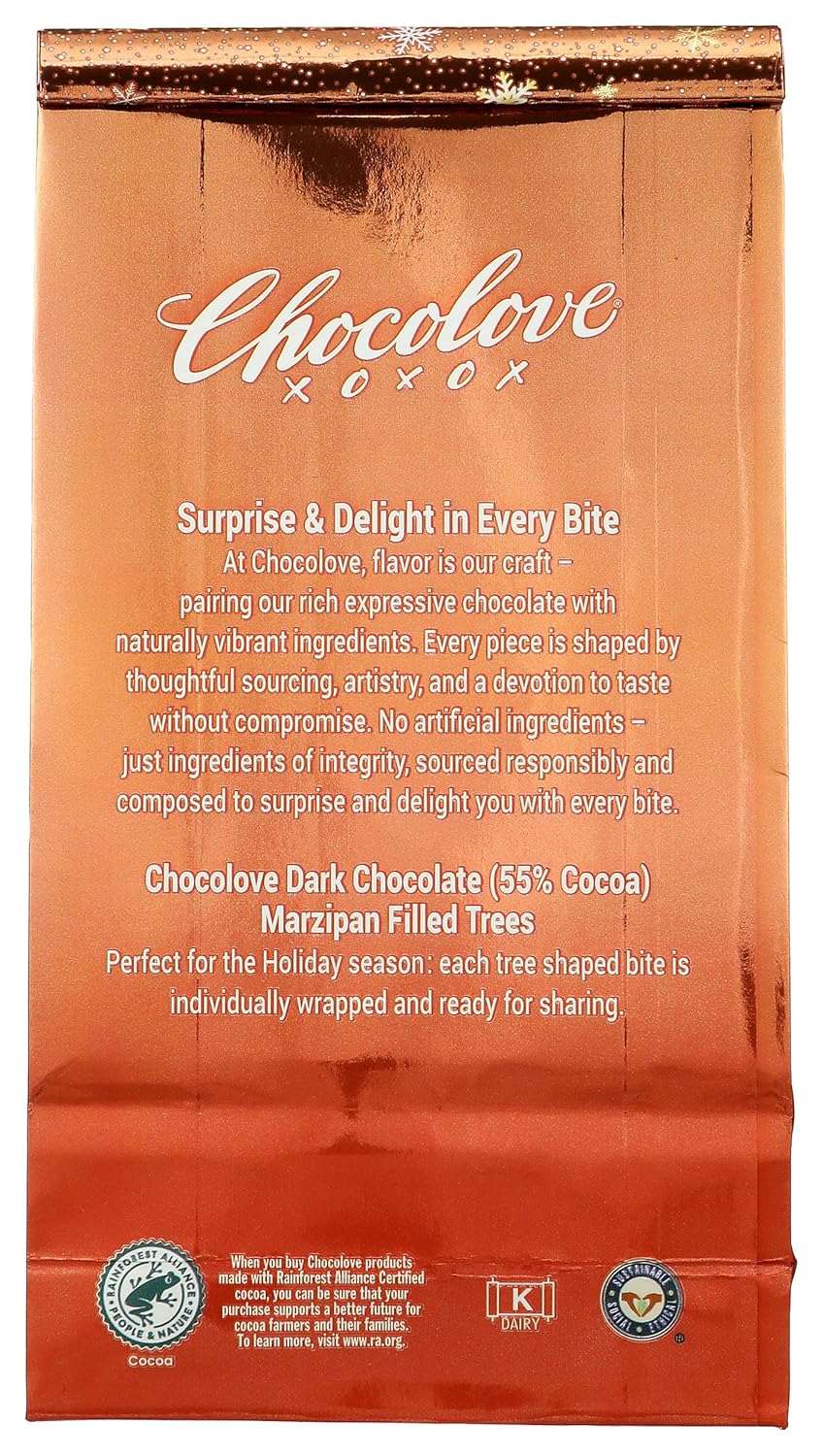 CHOCOLOVE Dark Chocolate Marzipan Tree Shaped Bites, 7.05 OZ