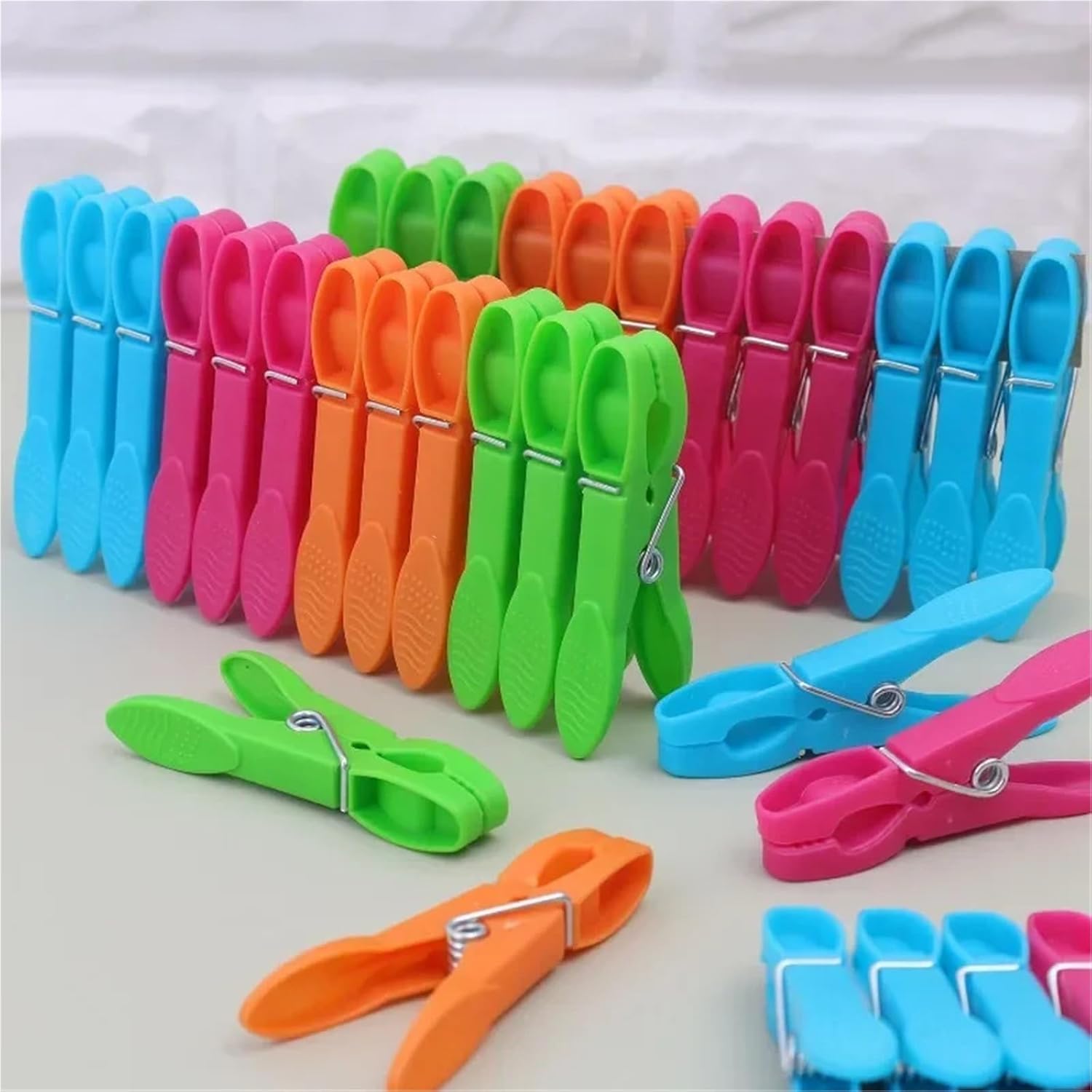 Space-Saving Design for Tidy Storage: The compact shape allows multiple clips to nest together or store flat, minimizing drawer clutter while keeping them accessible for everyday useFeatures:Strong GripThese clothespins are equipped have a firm grip and make the clothes not easy to be blown away by the wind, which is safe and reliable.Durable MaterialOur laundry line pendant is made of soft plastic and stainless steel. The substantial pendant is rust-proof and will not leave any marks on the clothes.VersatilityThis laundry pendant is an indispensable tool around any office or home. It can hold clothes, socks, towels, thin sheets, and other daily necessities.A Variety of ColorsThere are six different colors of clothespins in the 48 clips. The bright and exciting laundry line pendant will make drying clothes more enjoyable.Ergonomic DesignThis laundry pendant has an ergonomic design, pressing it effortlessly while clamping the clothes.Specification:Product Name: Clothes PegsColor: Colorful