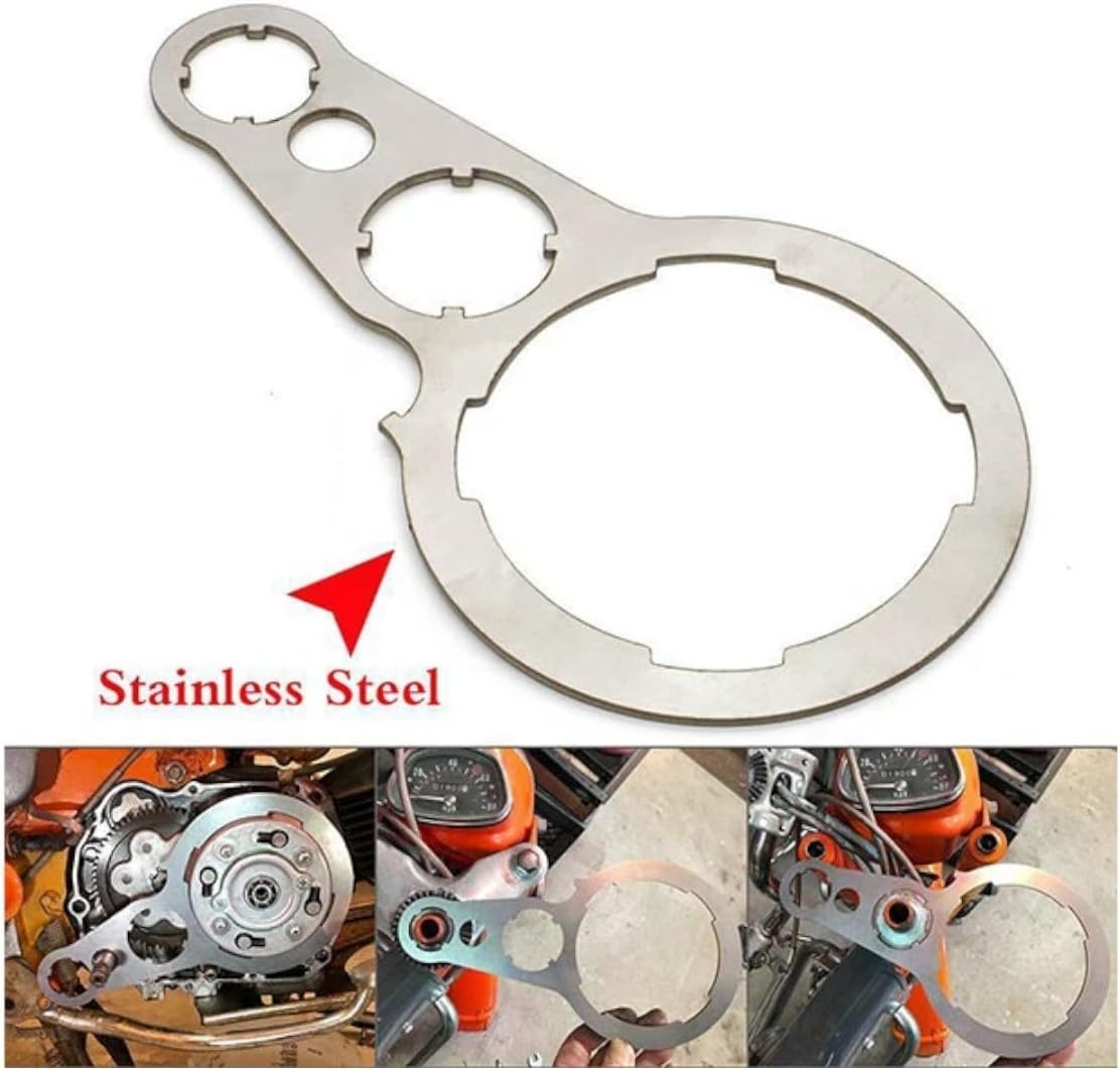 ✅Clutch Basket Removal Hold Tool For Honda CT90 CT110 CT200, ATV Stainless Steel ✅Fitment: ✅For Honda CT90, CT110, CT200 and others ✅Feature: ✅Brand New ✅Type: Versatile Tool ✅Material: Stainless Steel ✅--This is a very easy to use tool for holding the clutch basket on most for Honda CT90, CT110 and CT200's so you an loosen or tighten the nut that retains the clutch basket. ✅--The tool also has three spanner wrench openings to help remove the larger lower 46.6 mm headset nut and upper 33mm headset nut used on most CT90 K2 and later models. ✅--In addition, a partial spanner wrench with 1 dog is also incorporated to help remove the headset nut on the CT90 K1 model. --The smaller 33mm spanner wrench opening also fits the headset nut used on CT90 K0 and earlier models. ✅--It's possible that this wrench may be used on other for Honda motorcycles that have the same size clutch basket and headset nuts as used on the CT90, CT110 and CT200. ✅Package Includes: ✅1pcs Tool (Not includes Nut) ✅Feedback: ✅1.Any question for your order, please contact us in time, we will reply to you within 24 hours and give you a satisfactory answer. ✅2.If you are satisfied with our products and services, hope to take up your a little precious time to leave feedback reviews for our products.Thanks! ✅3.Your satisfaction is our effort. Welcome to order again! Have a great day!