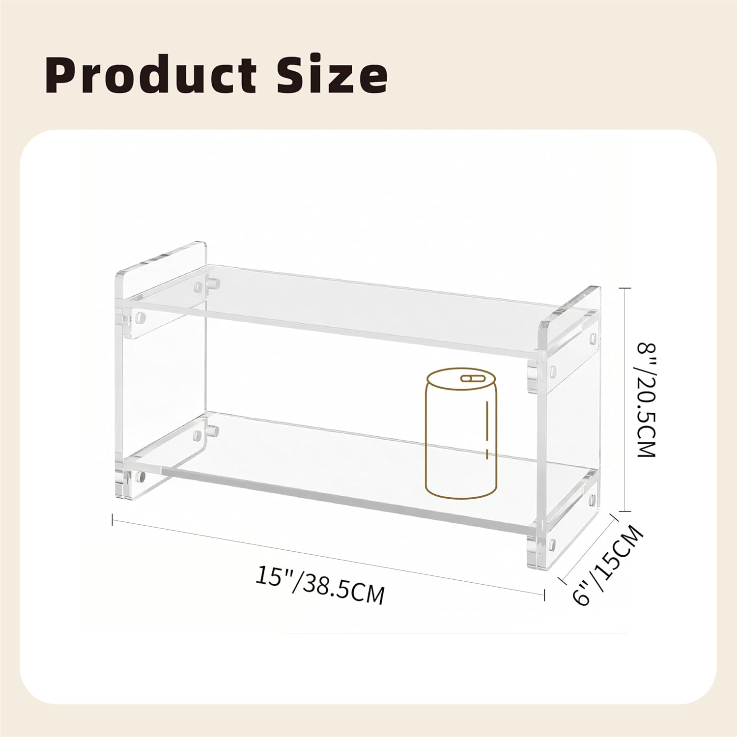 Organize your space with the sleek and functional SEICASAYA Double-Layer Acrylic Coffee Rack. Designed for space-saving vertical storage, this two-tier organizer is ideal for decluttering kitchen countertops, coffee stations, or office desks. The organizer is constructed from highly durable, crystal-clear acrylic, offering a modern, minimalist look that makes your items easily visible and accessible. It measures 15.5 inches (39.4 cm) Wide x 6 inches (15.2 cm) Deep x 8 inches (20.3 cm) High and weighs 2.5 lbs (1100 g). This sturdy design is built for long-term use and requires only quick, tool-free assembly. To maintain its clarity, simply wipe the smooth, waterproof surface clean with a damp cloth; avoid abrasive cleaners for care. Use it for coffee pods, spices, cosmetic bottles, or small office supplies.