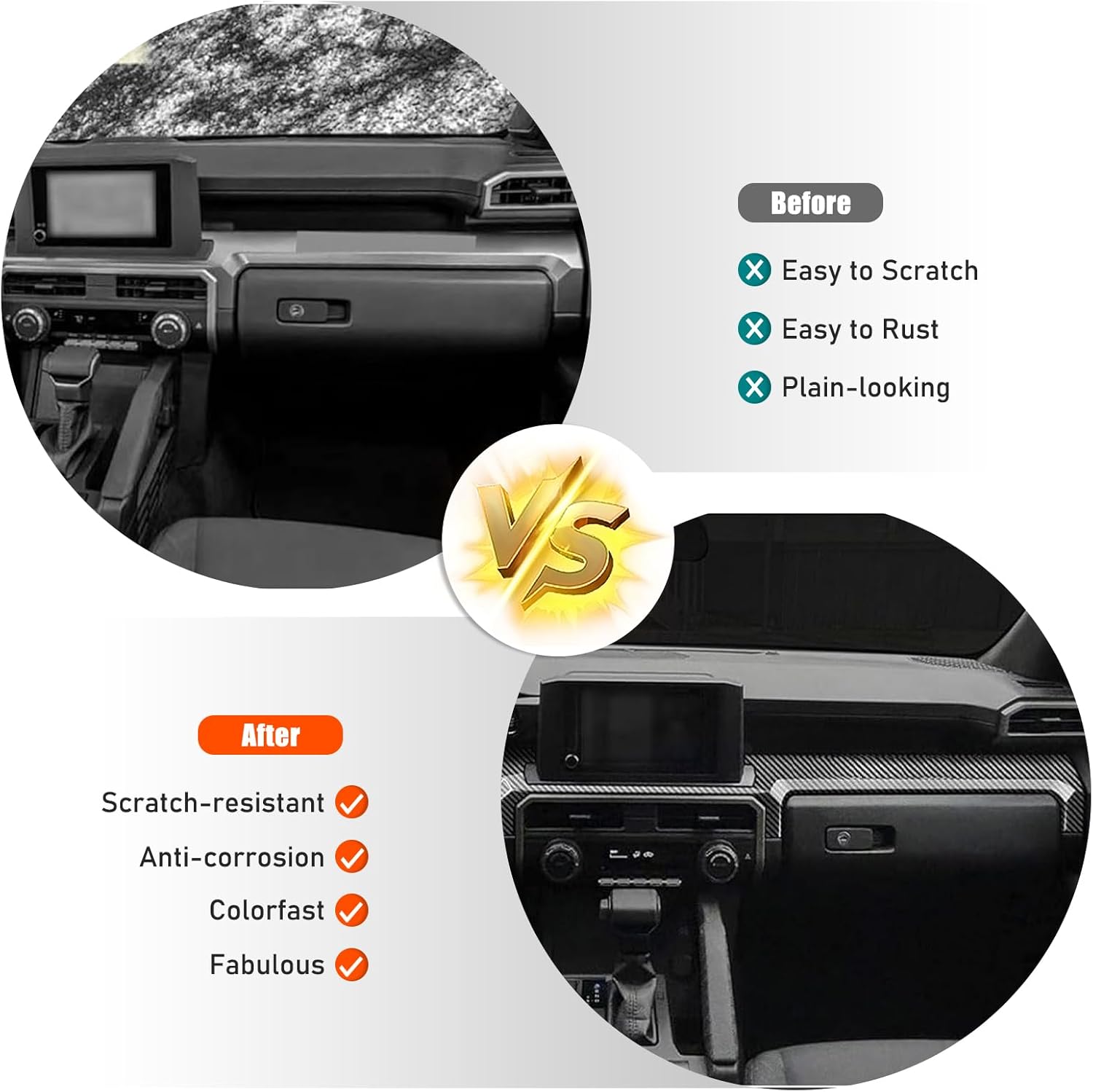 Why choose our products? 🎈Basic product info: Fitment: - Console dashboard decorative strip compatible with Toyota Tacoma 2024 2025+ Material: ABS Condition: 100% brand new and high quality guaranteed Product features: Light weight, Durable, Scratch-resistant, rust-proof, non-fading,It has good wear resistance, high temperature resistance, corrosion resistance and aging resistance, and has a long service life,Easy to install Product function:Scratch-resistant and durable,protect your original car inner center console dashboard from scratch. deal with Edging , not hurting hands or car.Enhance the eye-catching visual effect of the car body and highlight the grade! 🎈Easy Installation: 1.The back of the console dashboard decorative strip come with 3M tape. 2.Wipe clean the around in advance, and keep dry and clean. 3.Tear off the tape and press it tightly, and the installation can be completed quickly and easily. 4.If the weather is cold. Please use the hair dryer(hot air blowing)in order to provide the best viscous. 5.Please keep dry after been install at least 72 hours. Or it will easy to fall off. 🎈Package Include: 2PCS X Console Dashboard Decorative Strip 🎈NOTES: Please check whether this item can fit on your car before purchasing