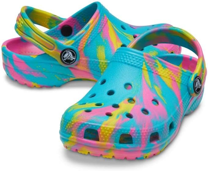 All-new marbled effects refresh the iconic clog that started a comfort revolution around the world, charmed kids everywhere and made parents fall in love with their easy-to-wear, easy-to-clean design! Our new marbled Croslite foam creates a colorful effect that is completely unique. While all marbled shoes have the same wavy look, no two shoes are exactly alike. Crocs Classic Clogs feature lightweight Iconic Crocs Comfort and a color for every personality, and remind kids of all ages to go out and play.