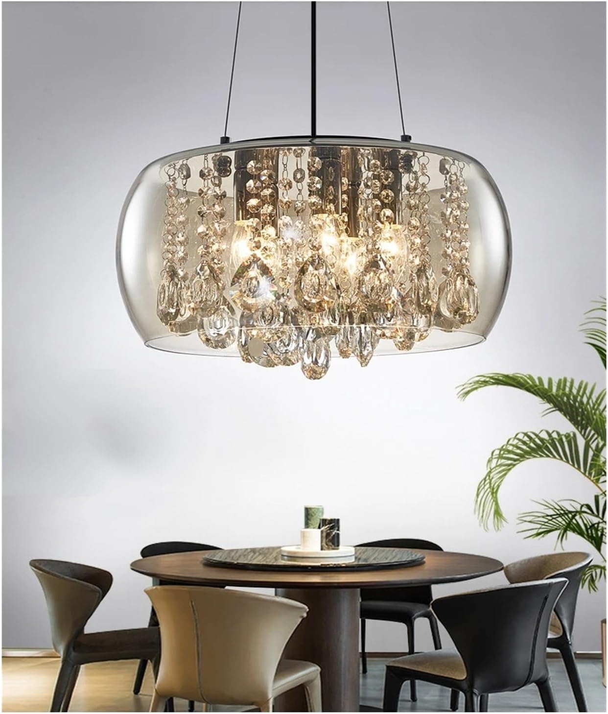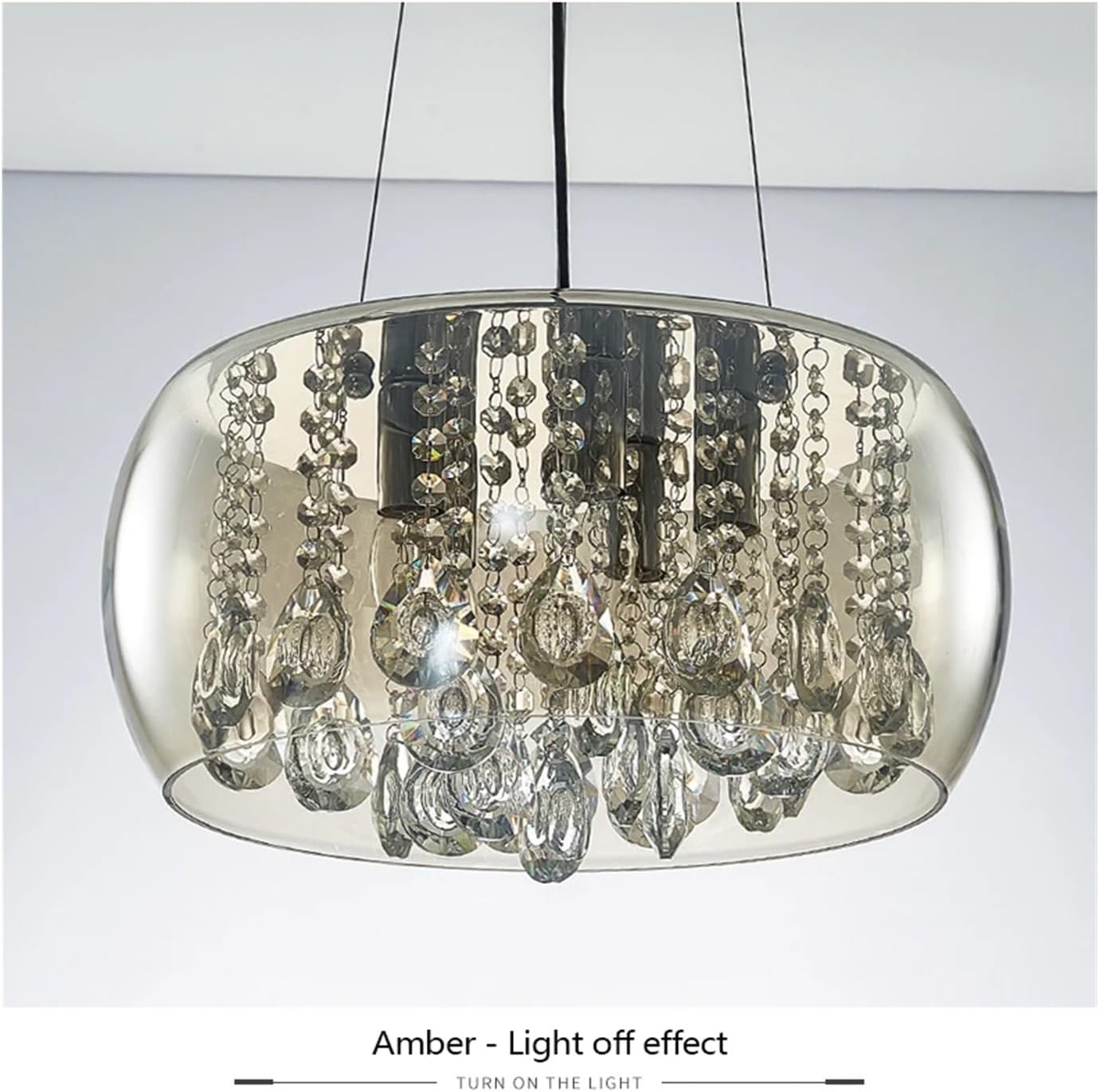 Light source: E14Material: Hardware + Crystal + GlassColor: Transparent/AmberLamp size: Diameter 40cm/50cmScope of application: 10-18㎡Application scenarios: Dining room, Bedroom,Living room,etc.Emitting Color: 3-colors