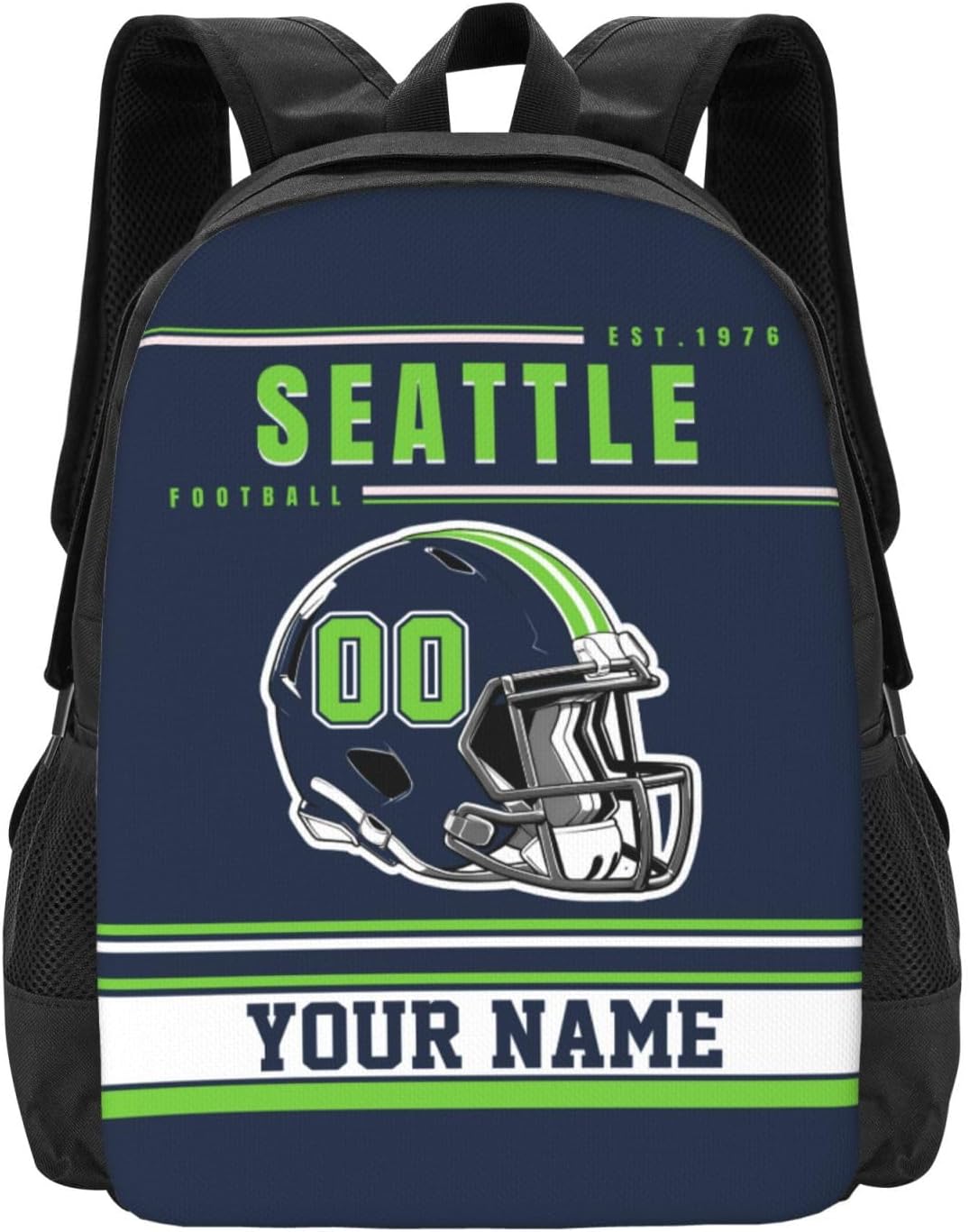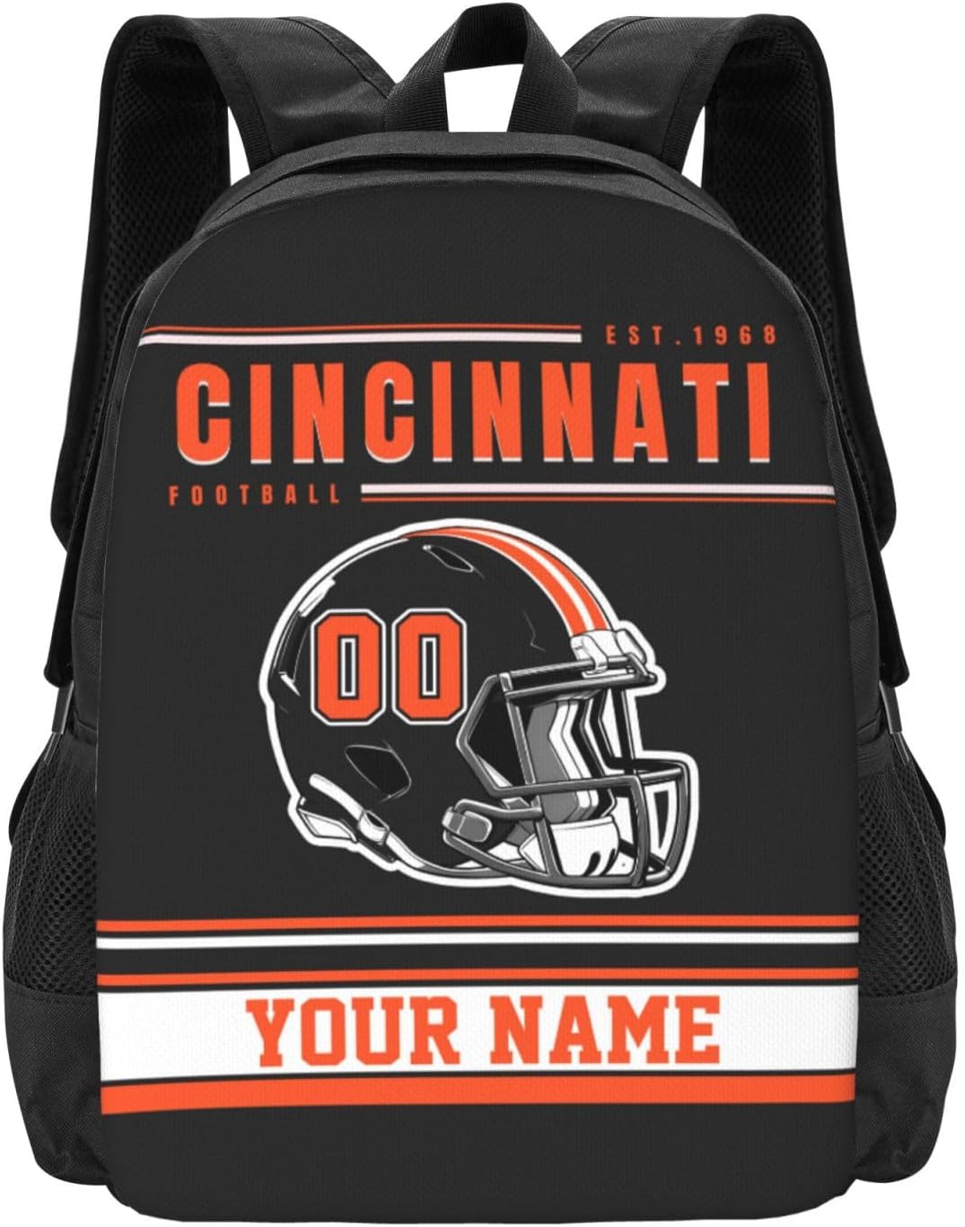 Personalized Name Number Daypack Backpack.Customization Steps:1: Choose Your Preferred Style.2: Click The "Customize Now" Button.3: Enter Your Number And Name.Our Designers Will Help You Design And Adjust.Material: This backpack is made of polyester, which is strong and wear-resistant, and the entire bag has a stylish and lightweight design. The backpack's large pockets can hold your daily necessities, and the side pockets can easily fit a water bottle and other small items.Backpack Size: 12.5in X 5.5in X 16.5in / 32cm X 14cm X 42cmApplicable Occasions: Our backpacks are suitable for Camping, Climbing, Hiking, Outdoor Activities, Bike Riding, Cycling, Traveling, Fishing, Picnic, Etc.Unique Gift: Give it to your closest friends, family members on birthdays, graduations, Christmas, Halloween, Thanksgiving and other holidays, share this thoughtful gift with your loved ones and they are sure to be delighted and excited.Attentive Service: If you have any questions or any dissatisfaction with this customized product of ours, please contact us immediately, our professional customer service will solve the problem for your satisfaction within 24 hours.