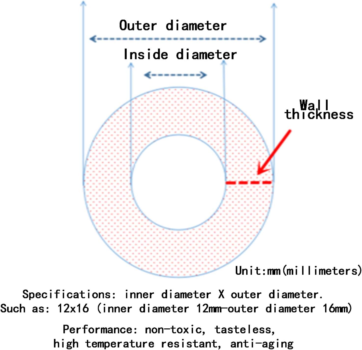 Features:Excellent flexibility, Small bending radius; Good shock resistant; Wide range for working temperature and pressure; Minimal pressure loss; Constant hardness,Long service lifeSpecifications:Long: 1m/3.28ftInside Diameter*Outside Diameter:12x16mm,12*18mmMaterial: Silicone tubePackage Contents:1 x Silicone tube
