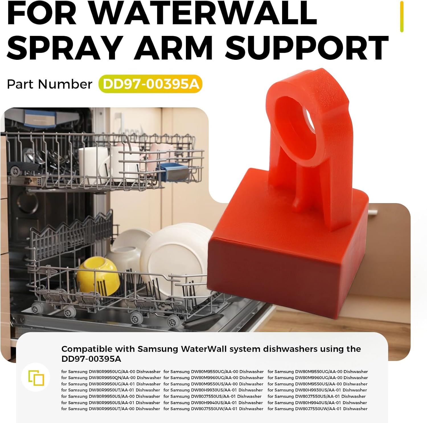 Maintain the performance of your for Samsung dishwasher with this DD97-00395A for WaterWall Spray Arm Support, designed as a compatible replacement to restore smooth function of the for WaterWall track system. By securely supporting the spray arm, it allows for even water distribution and consistent cleaning throughout the entire load.Crafted from strong, reliable materials, this DD97-00395A support part is built for durability and everyday use. It is engineered for a precise fit, ensuring your dishwasher continues to perform effectively without costly repairs or replacements.Installation is quick and straightforward—no special tools or professional service required. Simply replace your worn support with this part, and your dishwasher will be back to delivering spotless results.Compatible with Samsung WaterWall system dishwashers using the DD97-00395A.for Samsung DW80R9950UG/AA-00 Dishwasher for Samsung DW80R9950QN/AA-00 Dishwasher for Samsung DW80R9950UG/AA-01 Dishwasherfor Samsung DW80R9950UT/AA-01 Dishwasher for Samsung DW80R9950US/AA-00 Dishwasher for Samsung DW80R9950US/AA-01 Dishwasherfor Samsung DW80R9950UT/AA-00 Dishwasher for Samsung DW80M9550UG/AA-00 Dishwasher for Samsung DW80M9960UG/AA-00 Dishwasherfor Samsung DW80M9550US/AA-00 Dishwasher for Samsung DW80H9930US/AA-01 Dishwasher for Samsung DW80J7550US/AA-01 Dishwasherfor Samsung DW80H9940US/AA-01 Dishwasher for Samsung DW80J7550UW/AA-01 Dishwasher for Samsung DW80J9945US/AA-01 Dishwasherfor Samsung DW80J7550UG/AA-02 Dishwasher for Samsung DW80J7550US-AA-02 Dishwasher for Samsung DW80H9950US/AA-01 Dishwasherfor Samsung DW80H9970US/AA-01 Dishwasher for Samsung DW80H9970US/AA-02 Dishwasher