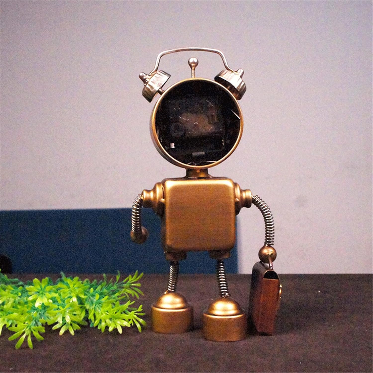 Desk Clock Metal Robot Desk Retro Table Clock Battery Operated None-Ticking Clocks for Bedroom Living Room Home DecorsFeatures:Size 28×16×8cm this elegant vintage desk clock is the perfect size for any shelf or table top.Our table clocks make from metal, treated with a special metal paint process, which is full of durability. Brand-new design, the design of the elegant retro-styled robot integrated into the desk clock is a new choose for your decoration space.none ticking The elegant vintage desk clock uses a finely crafted quartzs movement. Does not ticking or disturb you, ensuring accurate time. The table clock is powered by battery (not included).Our desk clocks suitable for most home decor styles and tastes, and our desk clocks are sure to brighten up your space and make it unique! This desk clock is suitable for living room, study, dining room, bedroom, library, shop. for housewarming, anniversary, birthday, thanksgiving, christmas.Specifications:Materials:ironColor:01,02Package Includes:1Piece Vintage Table ClockNote:Please allow 1-2cm errors due to manual measurement. Due to the differences betweeen different monitors,the picture may not reflect the actual colour of the item.