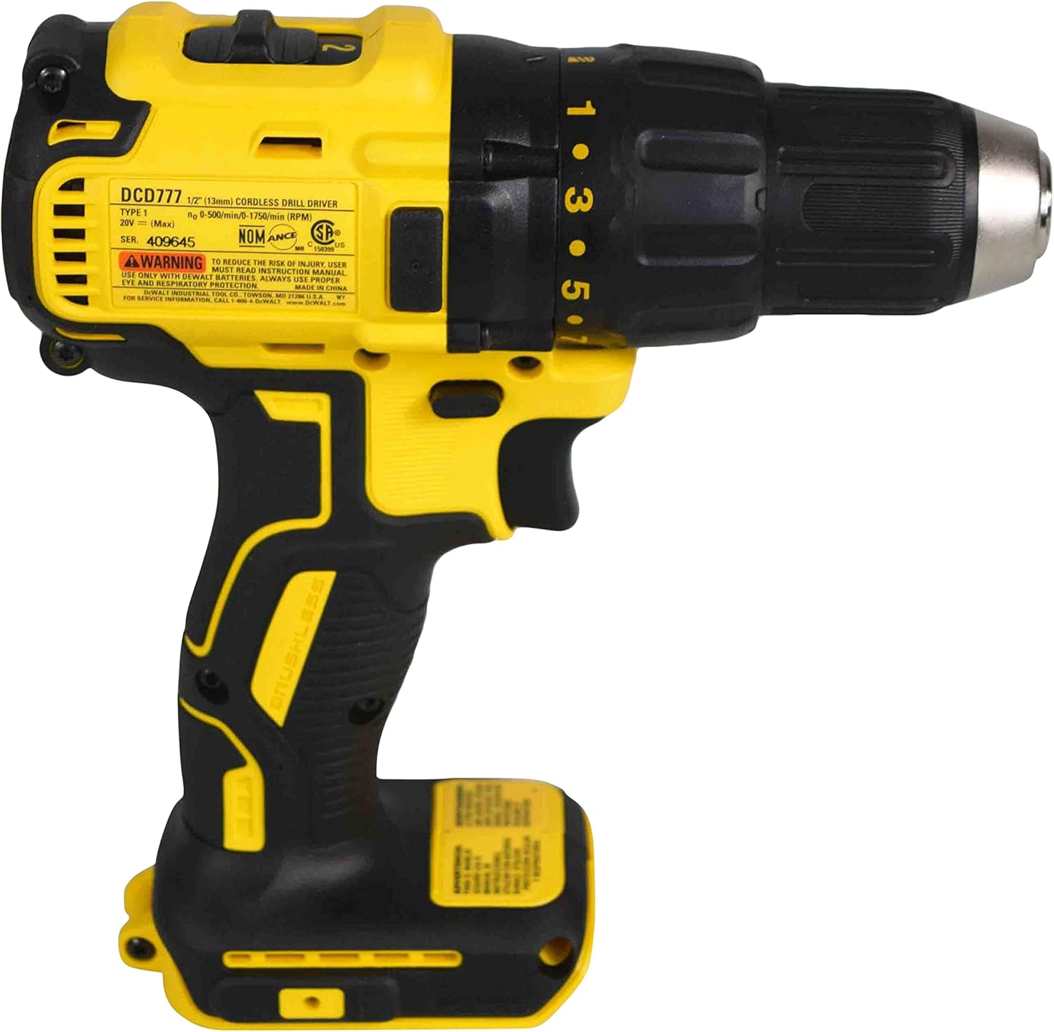DeWalt DCD777B 20V Drill/Driver delivers 0-1,600RPM and 340UWO. Designed with 2 speed transmission, single sleeve ratcheting chuck and LED light that has 20 second trigger release delay. Drill is lightweight at only 2.6lbs.