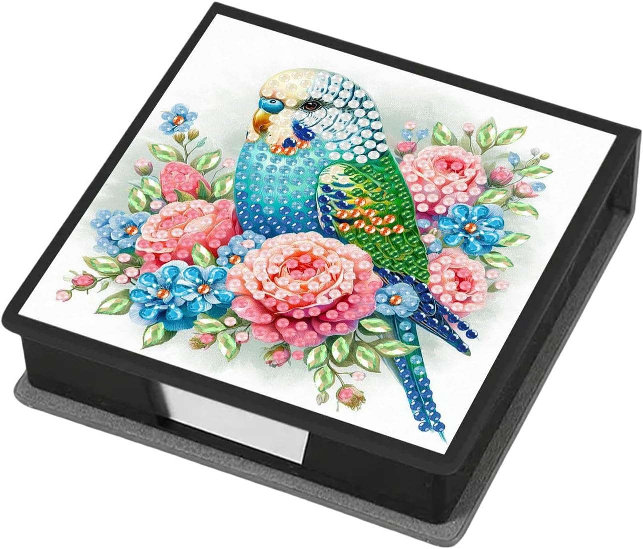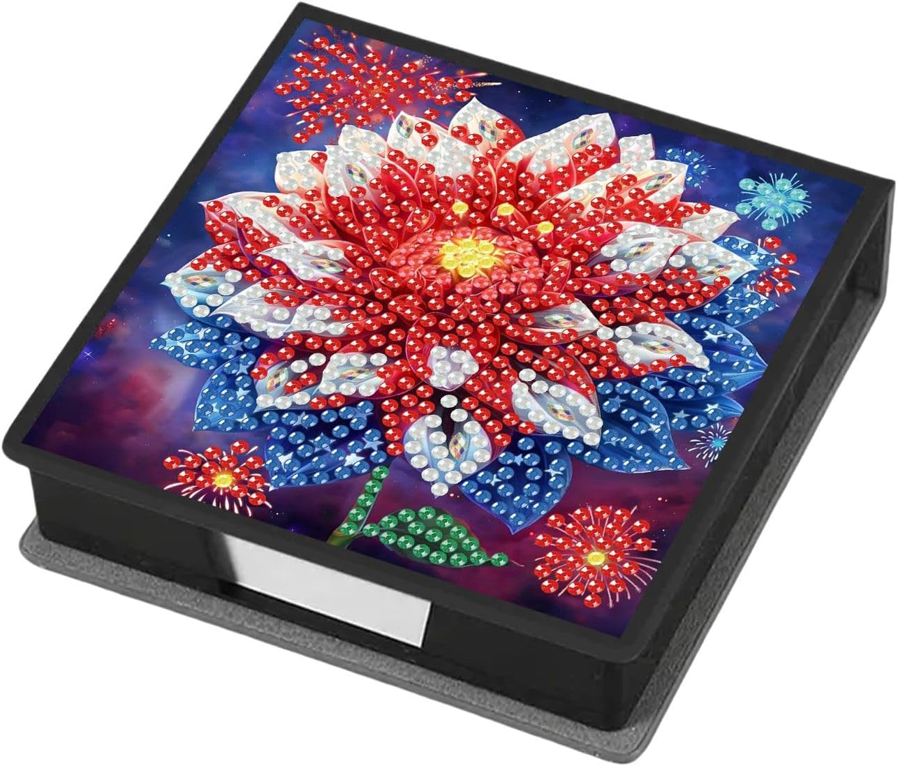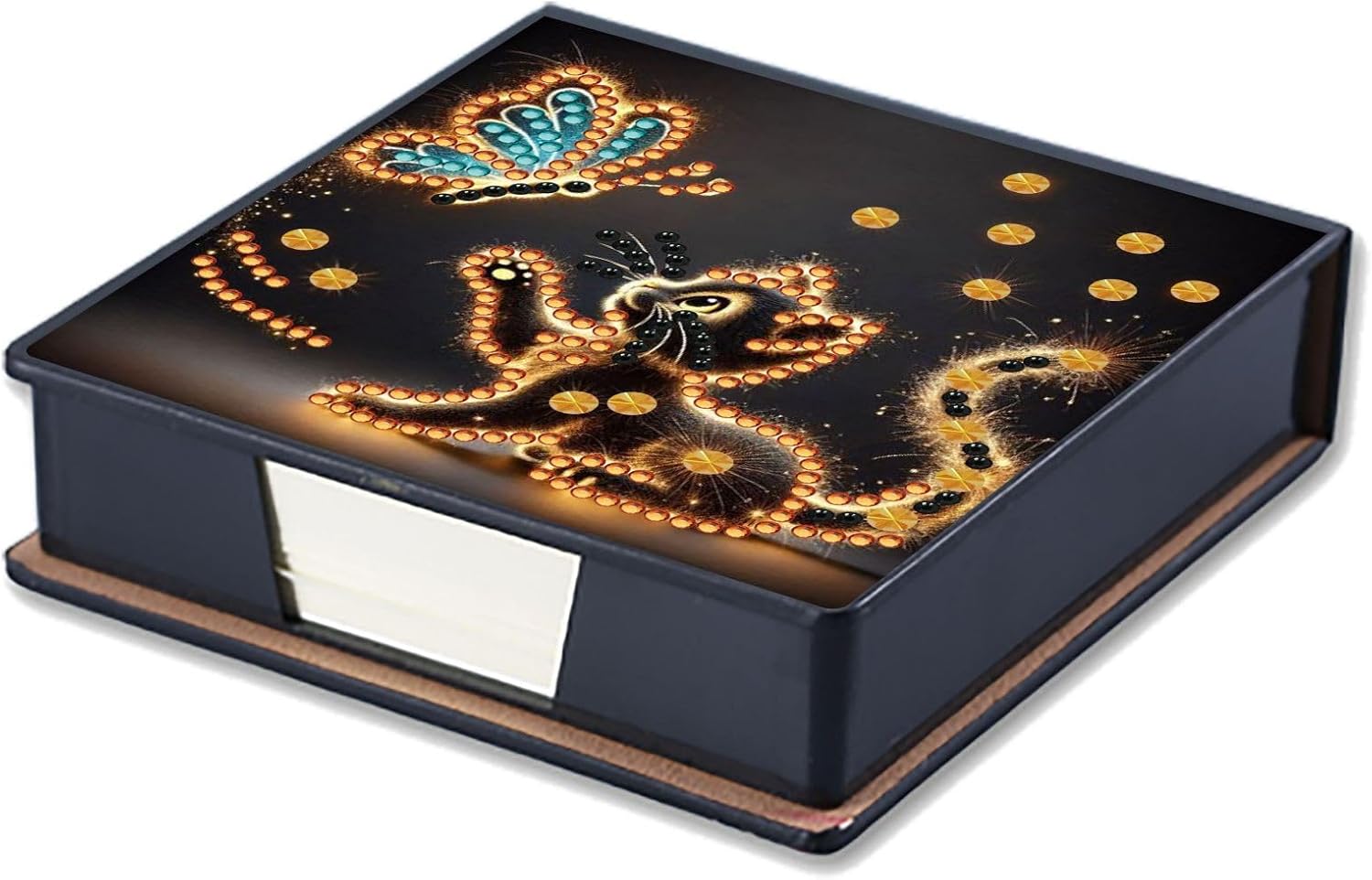 Product name: DIY diamond note boxDrill type: bright diamond/special-shaped diamondProduct material: leather + ABSProduct size: as shown in the pictureProduct packaging: opp bag packagingProduct packaging size: about 11X11X5CmProduct includes: 1X note box, 160X note paper, 1 set of drill bag, 1X tool kitProduct features:1. Improve ability: It can enhance people's hands-on ability and color matching ability, cultivate concentration and happy self-discipline. Enjoy the fun of the DIY process and create beautiful paintings.2. Easy to learn: Suitable for diamond art painting beginners and enthusiasts.3. Home decoration: Diamond art painting creative pattern design, multi-faceted cutting, gorgeous and eye-catching, can be used in study, dressing table, bedroom, living room and other places to achieve practical and decorative effects.4. Neat storage: The art of storage, enjoy a neat life, store note paper in a centralized manner to prevent scattering or loss, keep the desktop clean, easy to open and close, and easy to take.DIY diamond art painting production steps:1. Open the package and check whether the tools for diamond art painting are complete;2. According to the resin diamond color code, choose a color on the plate. If you paste the same color at one time, you can increase the speed;3. Find the corresponding color code on the canvas and start pasting until it is completed;4. After it is completed, in order to make the diamond art painting stable, you can take some books and press them on the canvas for a while;5. Finally it is done.Note:This is a DIY diamond art painting, not finished, you need to complete it yourself. All products are measured manually, please allow 1-2 cm deviation