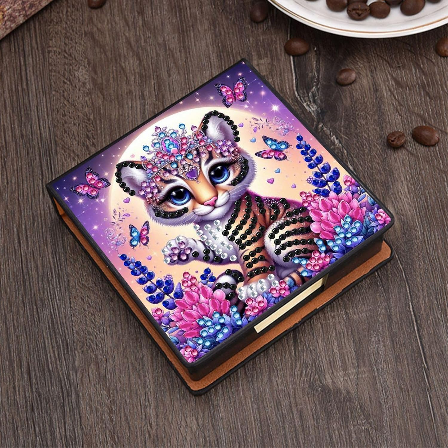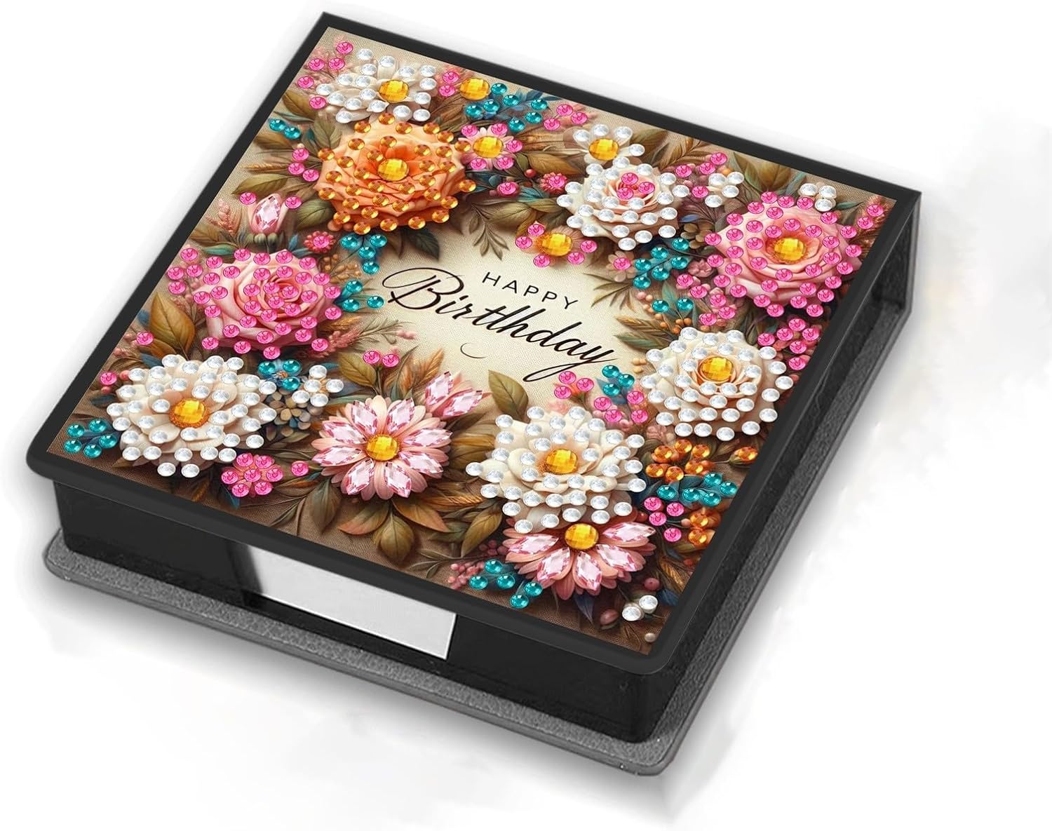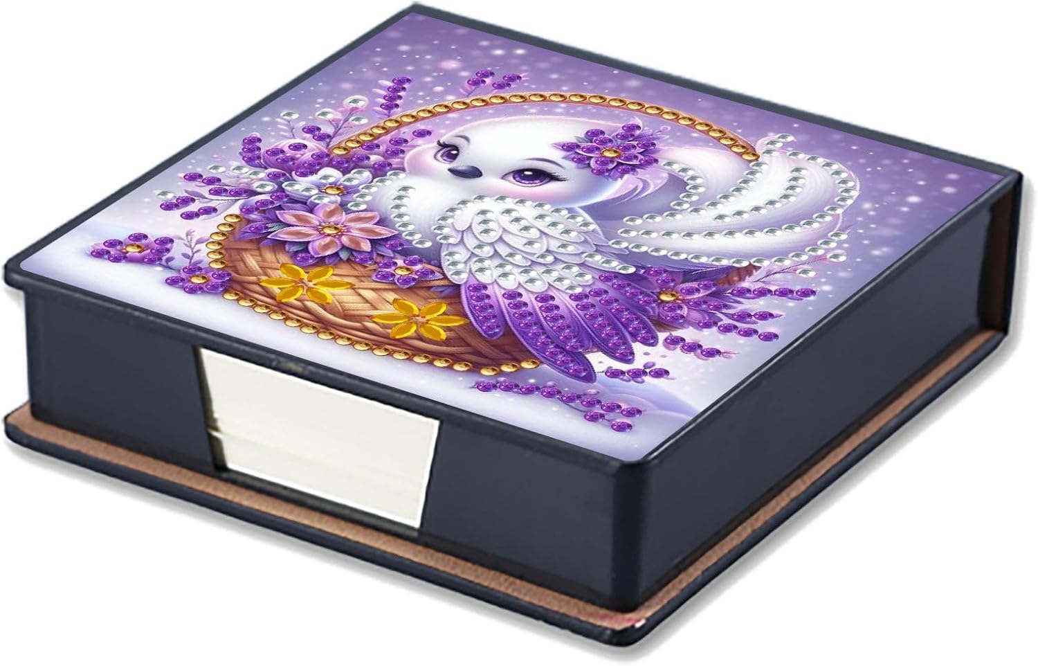 Product name: DIY diamond note boxDrill type: bright diamond/special-shaped diamondProduct material: leather + ABSProduct size: as shown in the pictureProduct packaging: opp bag packagingProduct packaging size: about 11X11X5CmProduct includes: 1X note box, 160X note paper, 1 set of drill bag, 1X tool kitProduct features:1. Improve ability: It can enhance people's hands-on ability and color matching ability, cultivate concentration and happy self-discipline. Enjoy the fun of the DIY process and create beautiful paintings.2. Easy to learn: Suitable for diamond art painting beginners and enthusiasts.3. Home decoration: Diamond art painting creative pattern design, multi-faceted cutting, gorgeous and eye-catching, can be used in study, dressing table, bedroom, living room and other places to achieve practical and decorative effects.4. Neat storage: The art of storage, enjoy a neat life, store note paper in a centralized manner to prevent scattering or loss, keep the desktop clean, easy to open and close, and easy to take.DIY diamond art painting production steps:1. Open the package and check whether the tools for diamond art painting are complete;2. According to the resin diamond color code, choose a color on the plate. If you paste the same color at one time, you can increase the speed;3. Find the corresponding color code on the canvas and start pasting until it is completed;4. After it is completed, in order to make the diamond art painting stable, you can take some books and press them on the canvas for a while;5. Finally it is done.Note:This is a DIY diamond art painting, not finished, you need to complete it yourself. All products are measured manually, please allow 1-2 cm deviation