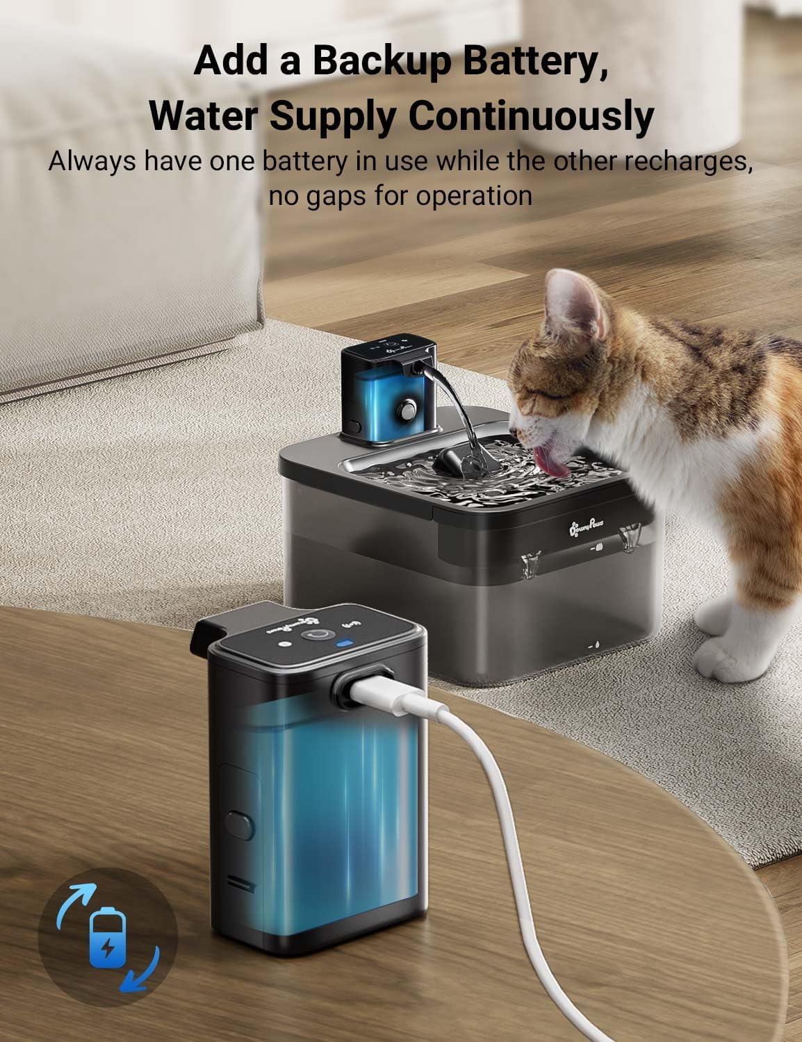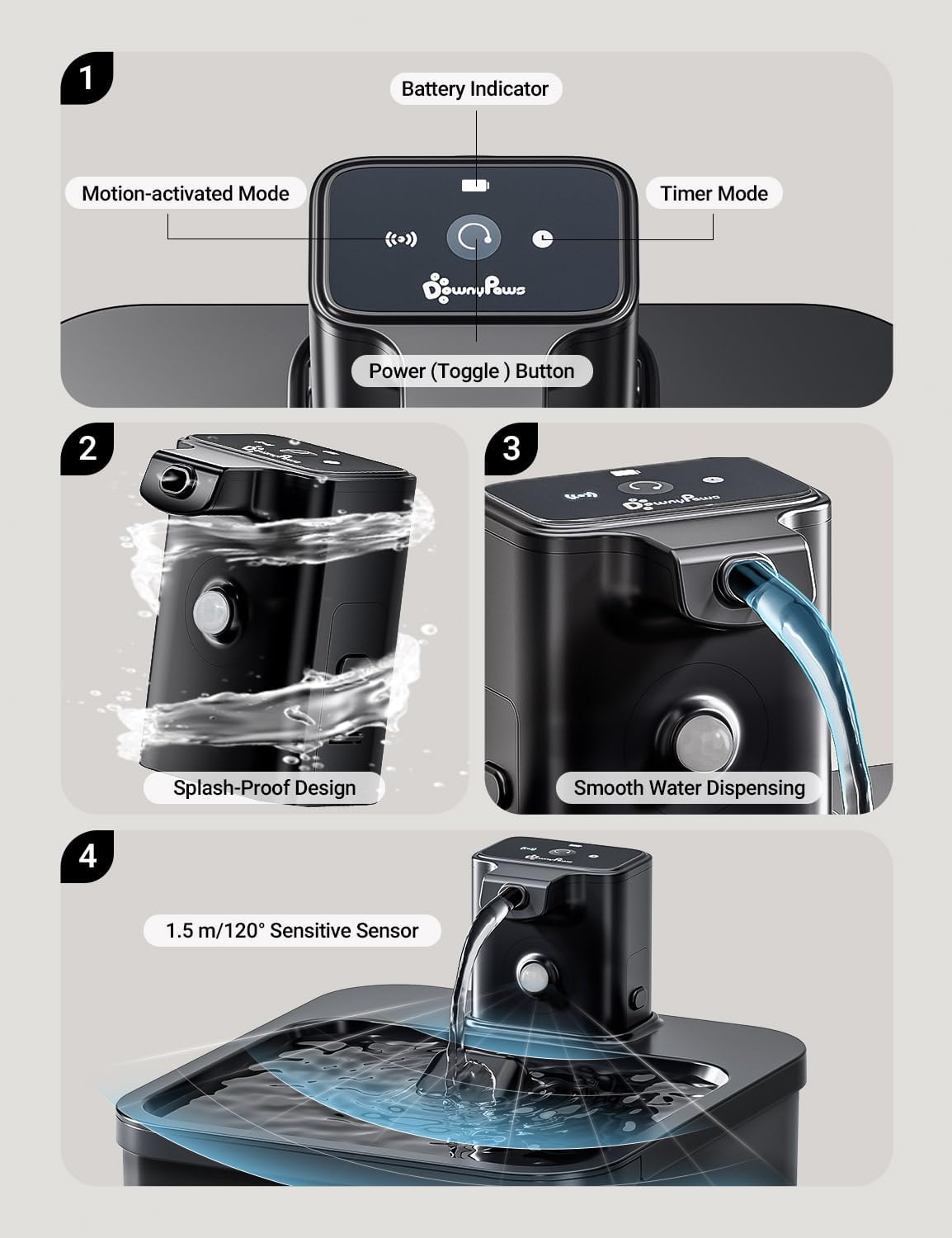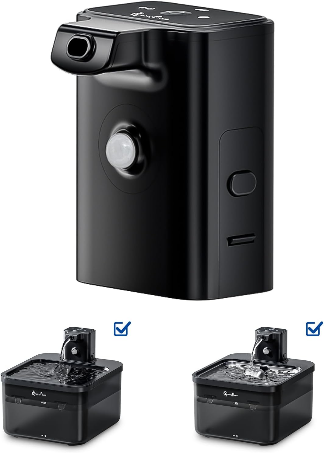 DownyPaws Wireless Water Fountain Battery Operated For Cats with 2 pcs Battery Compartment Replacement Black