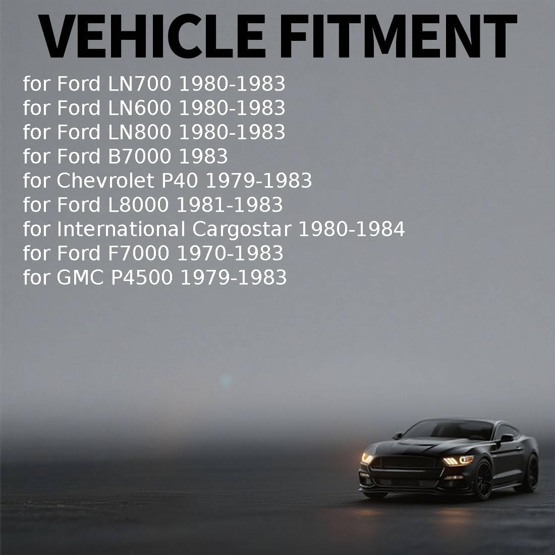 | Compatible with Vehicle Type | GMC F370 1958 1959, GMC C7000 1980 1981 1982 1983 1984 1985, Ford LN600 1980 1981 1982 1983, GMC S370 1958 1959, Ford LN700 1980 1981 1982 1983, Ford LN800 1980 1981 1982 1983, Chevrolet C70 1980 1981 1982 1983 1984 1985, Ford B7000 1983, GMC P4500 1979 1980 1981 1982 1983, Ford F7000 1970 1973 1974 1975 1976 1977 1978 1979 1983, GMC C6000 1980 1981 1982 1983 1984 1985, Ford L8000 1981 1982 1983, Chevrolet P40 1979 1980 1981 1982 1983, Ford LN7000 1981 1982 1983, Ford F800 1980 1981 1982 1983, International Cargostar 1980 1981 1982 1983 1984, Ford F700 1970 1973 1974 1975 1976 1977 1978 1979 1980 1981 1982 1983, Ford F600 1970 1971 1972 1980 1981 1982 1983, Ford LN8000 1981 1982 1983, GMC 370 1958 1959, Chevrolet C60 1980 1981 1982 1983 1984 1985, Chevrolet B60 1980 1981 1982, Ford FT800 1980 1981 1982 1983, Ford L900 1981, Ford L800 1980 1981 1982 1983, Ford F8000 1983, Ford B600 1980 1981 1982 1983, Ford B700 1980 1981 1982 1983 |