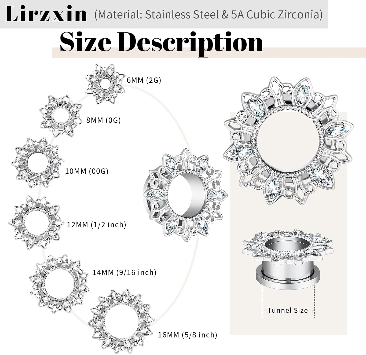 | Material | Cubic Zirconia, Stainless Steel |