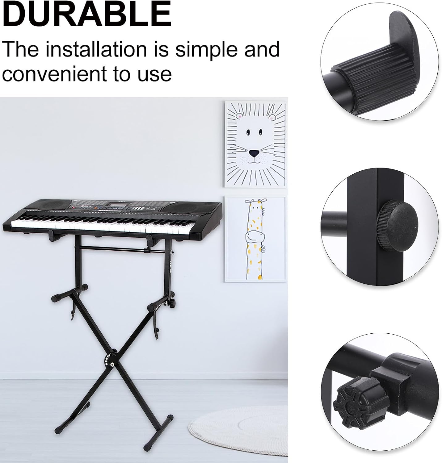 Package Include 1 x Keyboard Stand Characteristics -Product Info:Electronic piano stand - Color: Black. - Material: Iron. - Size: 71.00X12.00X31.00cm/ 27.90X4.72X12.18in. - It can be folded up for easy transportation. The stand with compact size will bring you much convenience, portable to carry. - Detachable design, it can directly install or remove the tier on the stand by tightening or loosening the screw electric keyboard stand. - These two incurvate ends are designed to prevent the keyboard from slipping down during performance universal keyboard stand. - With this keyboard stand, you can heighten its heights on the original base, to solve the inconvenience for higher player digital keyboard stand. - It is made of and sturdy iron material, not easy to deform to ensure its stability, durable and safe for lasting use.Goods Informationdigital keyboard stand It is made of iron material, sturdy structure, durable and stable for lasting use.keyboard rack stand It is easy to operate and use, simple assembly required, tool and instruction provided, convenient to install for working and disassemble for carrying around.electric piano keyboard It will a practical tool to heighten the height of keyboard rack.piano stand for keyboard This item is a keyboard stand