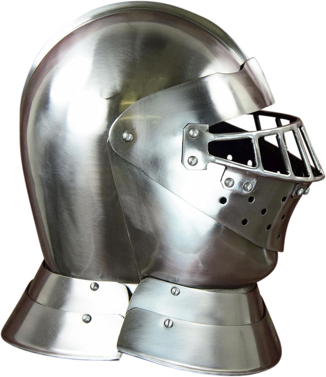 The English Tourney Close Helm is a distinctive and finely crafted helmet that captures the essence of medieval jousting and tournament armor. Designed specifically for competitive events, this helm offers full facial protection and a sleek, stylish profile, making it a must-have for historical reenactments, LARP events, and collectors seeking a period-authentic helmet. With its 14-gauge steel construction, the Tourney Close Helm provides both robust defense and practical comfort, ensuring you can take to the field with confidence.