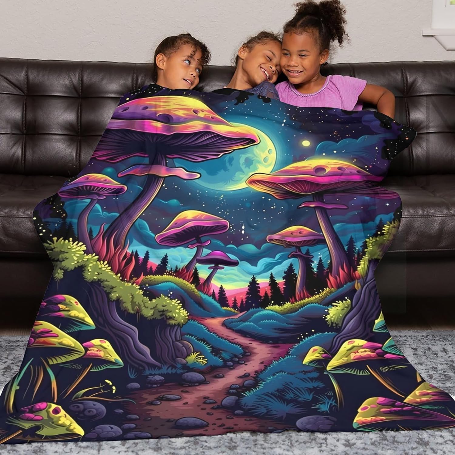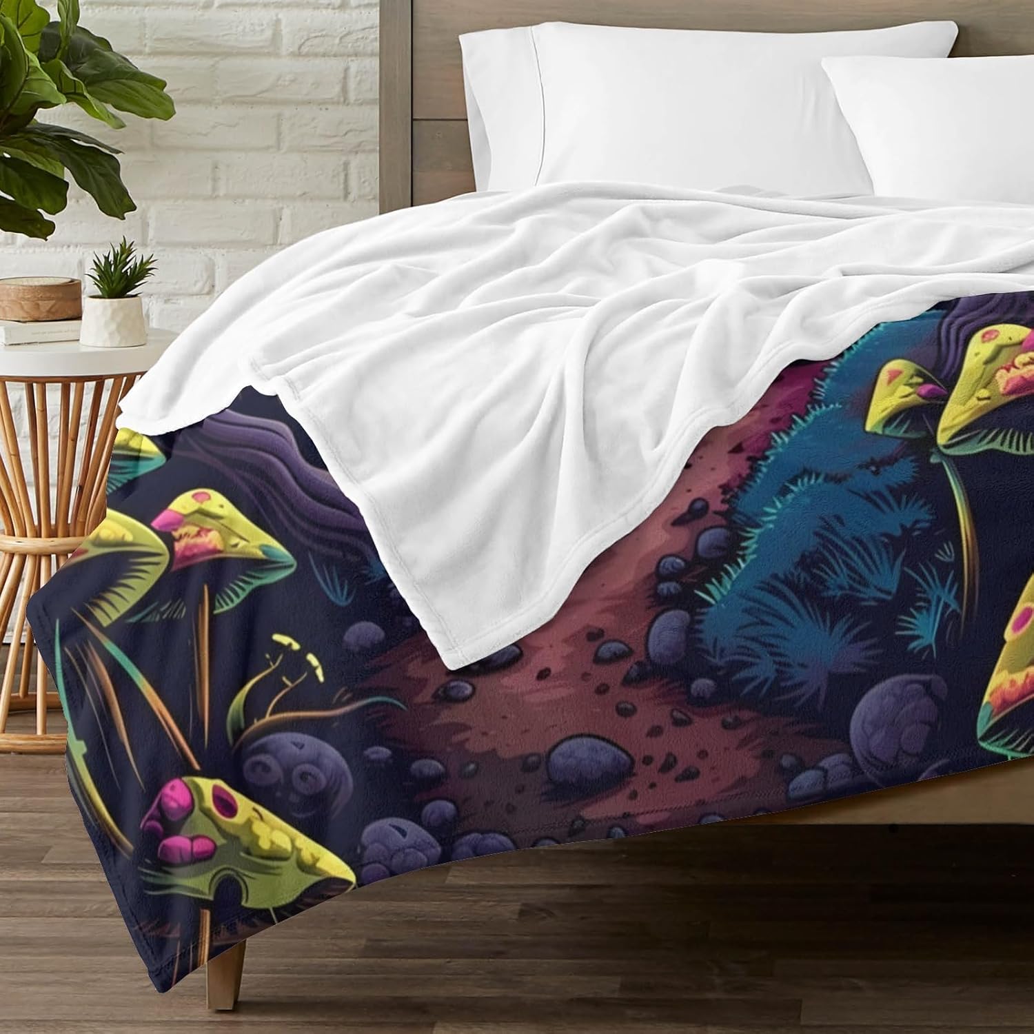 PINKBAY Fancy Mushroom Blanket Colorful Mushroom Throw Blanket Gifts for Mushroom Lovers Cozy Breathable Fluffy Flannel Blanket for Sofa Couch Bed Room Birthday Christmas Gift Decor