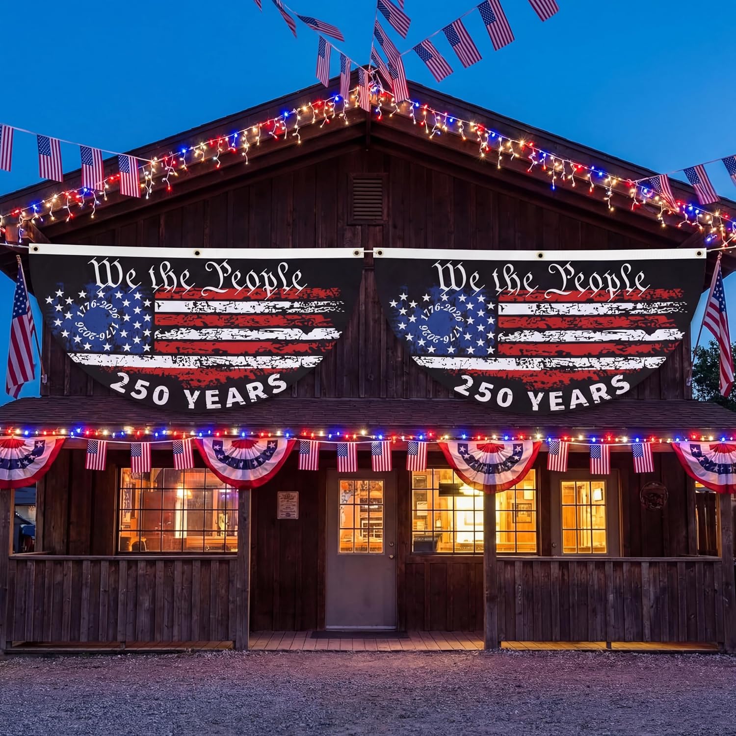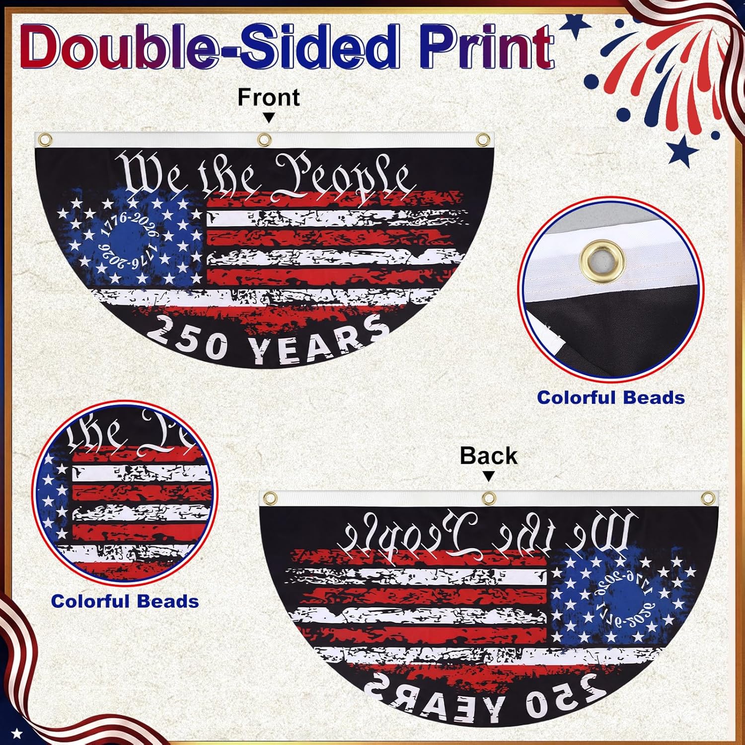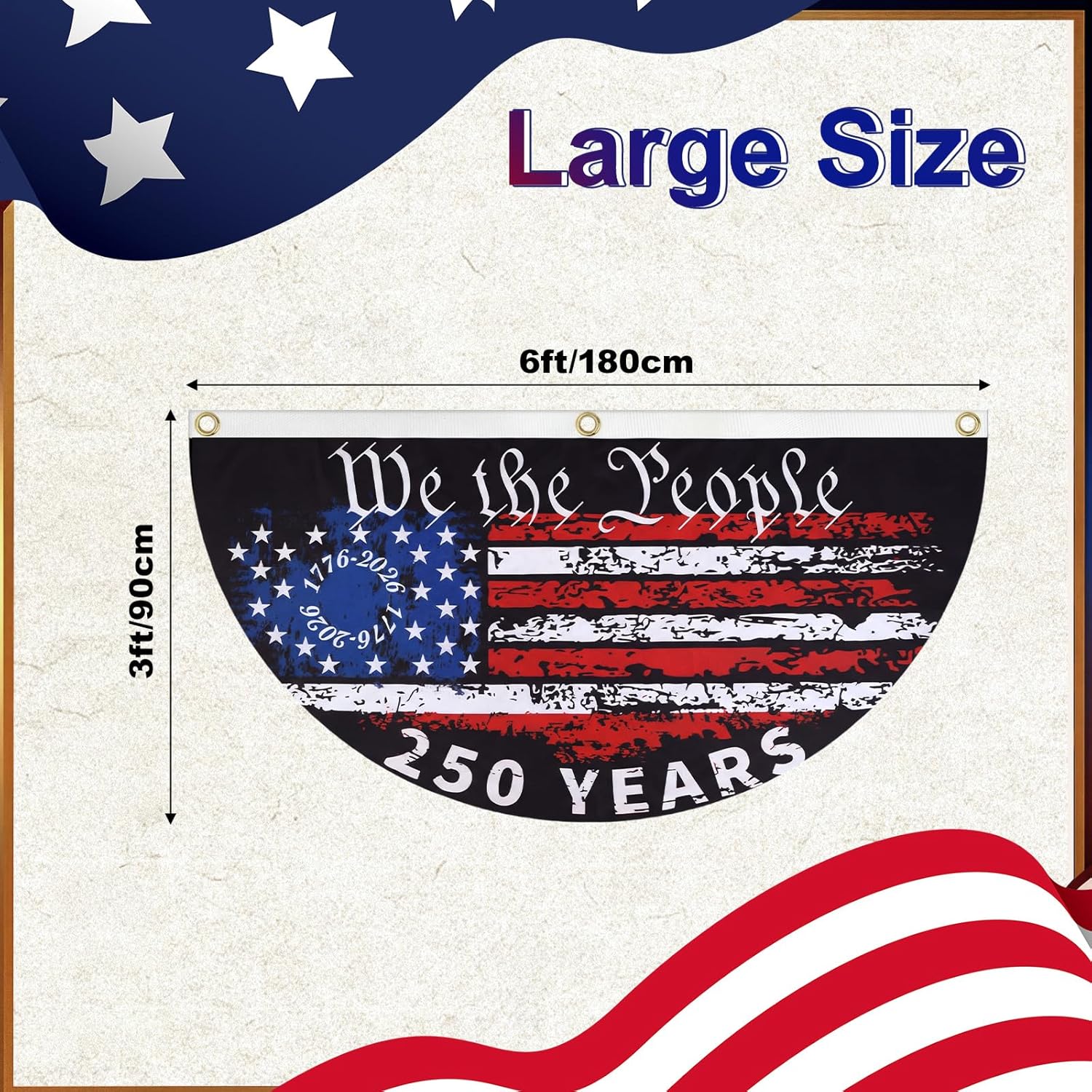 Features: Patriotic party backdrop yard decor focuses on exquisite craftsmanship details to improve the overall quality and user experience. The three brass grommets are installed firmly, aligned neatly, making hanging more convenient and smooth. The printing position is accurate, and the patterns and text are aligned neatly, showing a neat and exquisite visual effect. Patriotic hanging fan flags adopt double-sided mirror printing technology, which ensures that the images and text on both sides are clear and distinguishable. The printing colors are rich and vivid, with exquisite craftsmanship that makes the patterns and text look sharp and bright. This double-sided printing technology enhances the decorative effect of the bunting and makes it more practical for outdoor use. Specifications: Material: polyester Color: mainly red, blue, white Size: 6 x 2.99 ft/ 1.83 x 0.91 m (LxW) Package includes: 2 x Fan flags Notes: Manual measurement, please allow slight errors on size. The color may exist a slight difference due to different screen displays