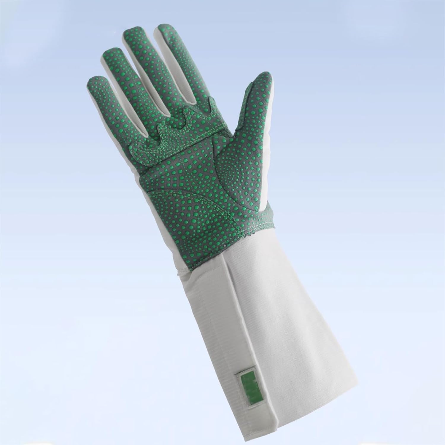 Our fencing gloves are wear-resistant and reinforced, suitable for daily training and competitionsThe surface material of the gloves is breathable, keeping the inside dry and warmThe palm is reinforced and thickened with leather, and the surface is roughened, which allows for good control and flexible use when holding the hiltThe wrist has an adhesive design that can be adjusted to make it comfortable to wear and better play in training【Product Details】Name: Fencing GlovesSizes: 5, 6, 7, 8, 9, 10, 11Applicable gender: UnisexPackage: 1x Fencing Glove