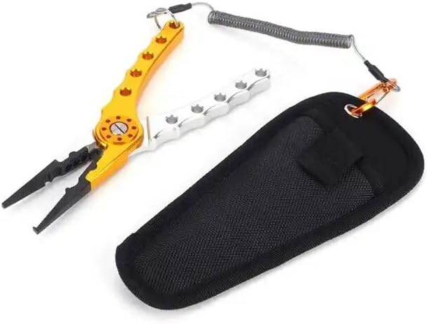 Fishing Lure Pliers Tongs Multifunction Aluminum Alloy Hook Remover Tool Equipment Features: 1. Fishing pliers, with stainless steel jaws and aluminum handle, can open split ring, remove hooks and cutting braid line.2. The handle has a spring and supports the insertion of braid wire cutter. The pliers automatically open when the spring is loaded.3. Stainless steel jaw added a small hook at top for opening stubborn split rings, help you repair lure, with a split lead and single‑barrel crimping position.4. Can cutting braid line and single thread for inset braid cutters, just line up the pliers you can get smooth and clean cutting.5. With wire coiled lanyard and nylon storage bag to always keep this tool within and security, easy to carry.Specifications: Item Type: Fishing PliersMaterial: Aluminum AlloyWeight: Approx. 187g / 6.6ozLength: Approx. 20cm / 7.9inPackage List: 1 x Fishing Pliers with Hook1 x Storage BagNote: 1. Please allow 0‑1 inch error due to manual measurement. Thanks for your understanding.2. Monitors are not calibrated same, item color displayed in photos may be showing slightly different from the real object. Please take the real one as standard.3. We confirmed order addresses. Your order address MUST MATCH your address.4. The images shown are not the actual item and are for your reference .5. SERVICE is provided by the carrier and excludes weekends and holidays. s may vary, particularly during the holiday season.7. Due to stock status and time differences, we will choose to your item from our first available warehouse for .8. We seller are not in charge of import , buyer is responsible for that. Any dispute caused by this is unreasonable.9. BR buyer please provide the cpf or cnpj, it will be better for you to get it mor