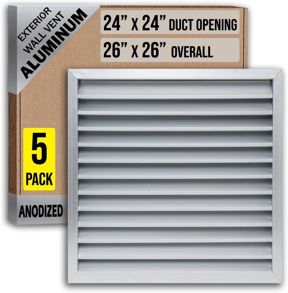 Handua 24 x 24 Weatherproof Rain & Rust Proof Water Resistant Anodized Aluminum Exterior Wall Vent Gable Shed for Crawlspace Outdoor Doors Attic Upgrade your exterior defense with the Handua 24x24 Weatherproof Aluminum Exterior Wall Vent. Crafted for optimal durability and timeless elegance, this gable vent cover is the perfect solution for outdoor walls, doors, and more.Ensure a perfect fit by measuring the duct opening; the listed size corresponds to the duct opening size. If your duct opening is 24" W x 24" H, the 24x24 size option is the ideal choice. Keep in mind that the outer dimensions of the grille are 2" wider, ensuring a seamless installation.Constructed from high-quality anodized aluminum, this vent cover guarantees premium durability and a rust-resistant, enduring surface. Its robust exterior defense system is engineered for external use, featuring noise-free components that eliminate vibration. This heavy-duty construction is suitable for installation into brick and cement walls, effectively guarding against foundational water leaks and moisture.Experience precise weather and pest resistance with expertly shaped louvres that prevent rainwater intrusion. The galvanized steel bird mesh screen enhances the product's effectiveness, providing reliable pest control and creating a secure, weather-proof environment.Versatility is key with this exterior grille air vent, crafted from heavy-duty anodized aluminum. Ideal for walls made of brick and cement, it ensures ventilation and protection in crawlspace gables. Whether it's your home or workspace, this grille is the ultimate solution for guarding against water leakage and maintaining a comfortable, secure environment.Upgrade your exterior with the Handua Weatherproof Aluminum Exterior Wall Vent – the perfect blend of durability, elegance, and versatile protection for your outdoor spaces.