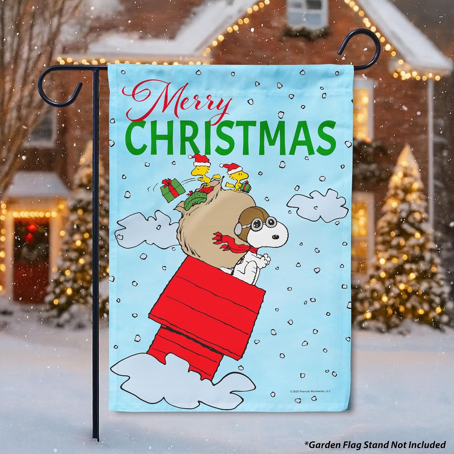 From the original cartoon art of Charles Schulz, this Officially Licensed PEANUTS Merry Christmas Snoopy Sleigh – Garden Flag will liven up your yard or garden. This product is a generous 12″ x 18″ and is made of the highest quality materials. We print each design with care! If you are looking to celebrate Christmas, this will be sure to get you into the spirit and personalize your home or campsite. Featured as part of our growing PEANUTS collection. Searching for a gift for your Mom, Grandmother or Sister? Need a gift for your Best Friend who has everything? Need something unique for Dad? You will be thrilled with the reaction when they open a Garden Flag as a gift from you!