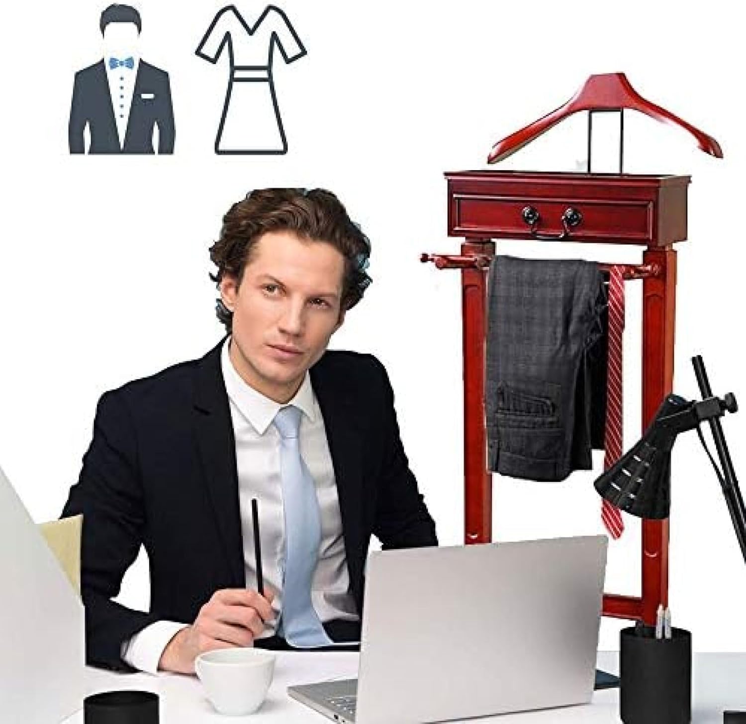 Put an end to crumpled shirts and wrinkles in suits. It is annoying if there is no suitable place to hang up your clothes in the evening. Especially when you come back from the office and want to quickly slip into comfortable sweatpants. Hang shirts, blouses, jackets, trousers or skirts on the clothes rack. The free-standing clothes butler can be placed as desired and, thanks to its small width, fits into the bathroom, bedroom or children's room to save space. The simple design made of light, friendly Free standing valet Mute servant for your clothes With clothes rails Stable thanks to the wide foot section For the bathroom, dressing room and bedroom Quick and easy assembly without drilling Valet wood in detail Dimensions H x W x D: approx. 122x 46 x 40 cm/48.03*18.11*15.75inches Material: all solid wood Style: Simple American Installation method (paper hardware with attached drawings, self-installation) Package list 1X Clothes Valet Stand