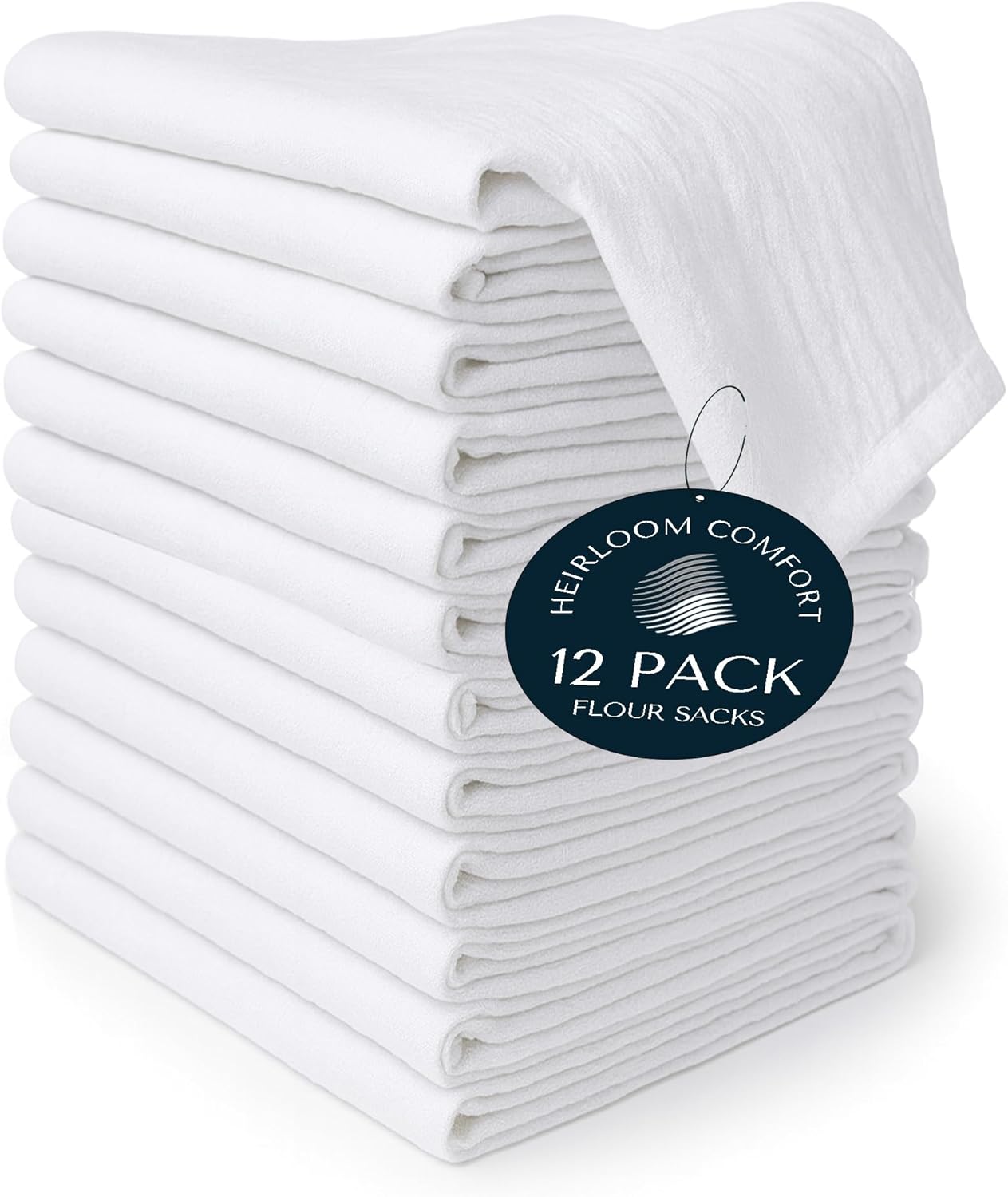 Upgrade your kitchen essentials with our premium flour sack towels, available in generous 28x28 inch and convenient 18x28 inch sizes, crafted from 100% natural cotton for superior softness, absorbency, and durability. Our high-quality white dish towels are tightly woven and lint-free, making them ideal for drying dishes, cleaning countertops, polishing glassware, wiping spills, baking bread, and covering rising dough. Whether you're a home cook, baker, or craft enthusiast, our towels offer exceptional performance for embroidery projects, screen printing, and everyday cleaning tasks. Perfect for home, commercial kitchens, restaurants, and bakeries, each towel features a smooth finish and a soft touch that improves with every wash. Available in bulk 24-pack for large families or food service, 12-pack for daily household use, and 6-pack for small kitchens or gifting, our flour sack towels are reusable, machine washable, and quick drying. Our multipurpose kitchen towels deliver exceptional value for canning, cooking, drying produce, and general household chores, making them a must-have in every kitchen drawer.
