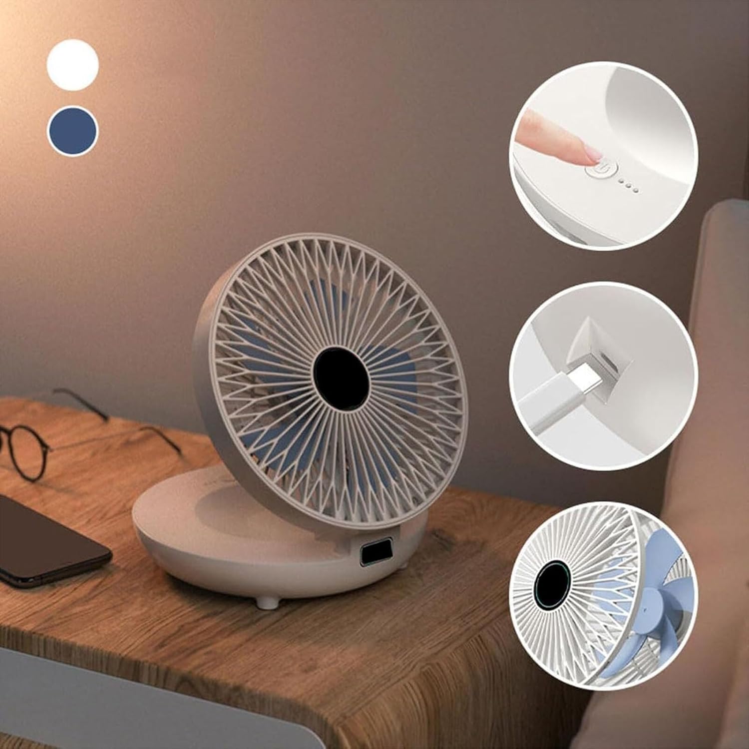 Dear friend, welcome to our shop:hope you find what you like in our shop.Colour: White, BlueBattery capacity: 1200 mAhBattery life: 1.5-5 hoursPackage1 * Foldable Air Circulation FanIf you have any questions, please leave your information, we promise to reply to you within 24 hours and provide you with the best service.If you are satisfied with our products, please don't forget to leave 5 stars praise, we will thank you for your encouragement