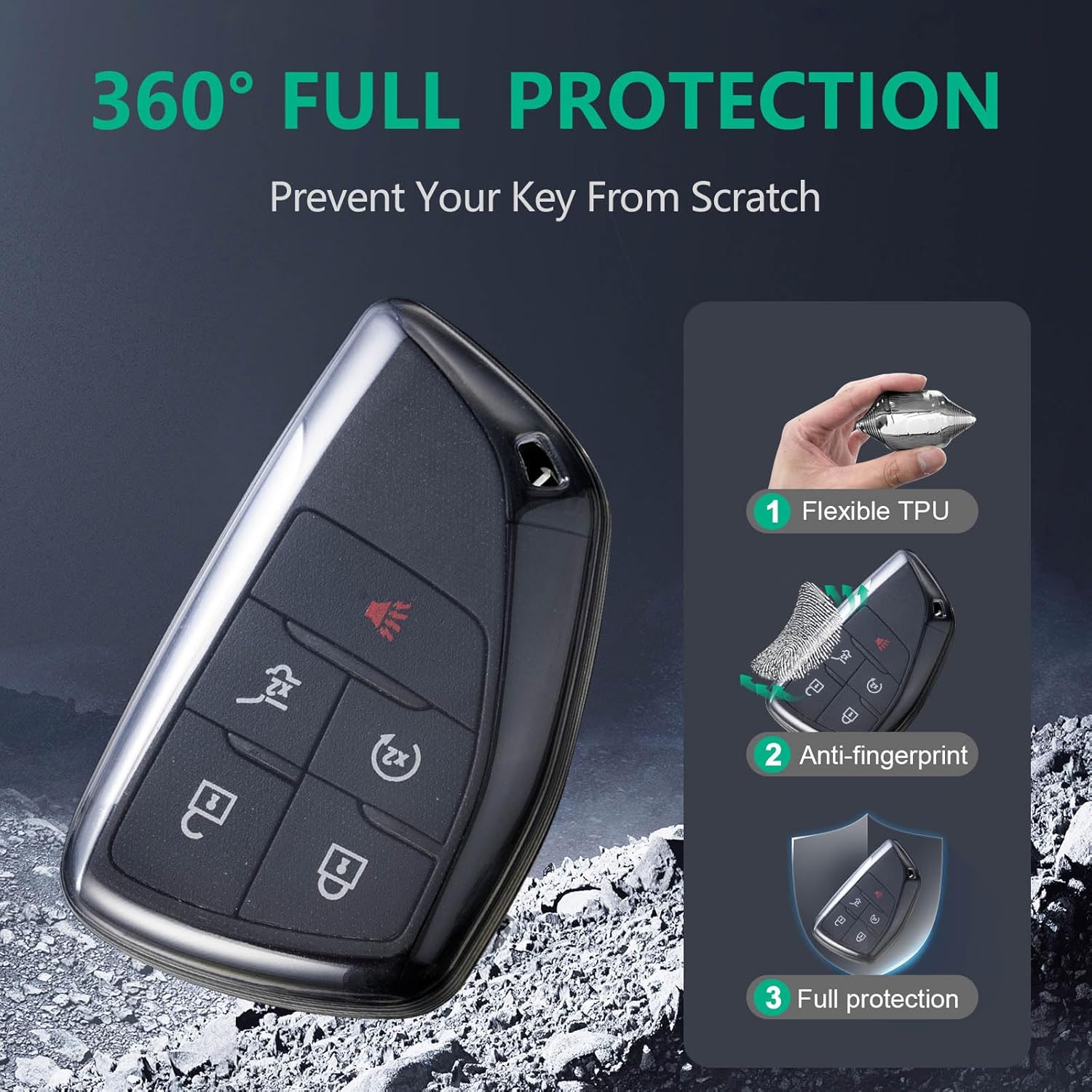 for Clear Key Fob Cover TPU Car Key Fob Case Fit for GMC Yukon 2023 2022 2021 Tahoe Suburban 1500 Accessories 6 Buttons Car Remote Key Case Shell Protector