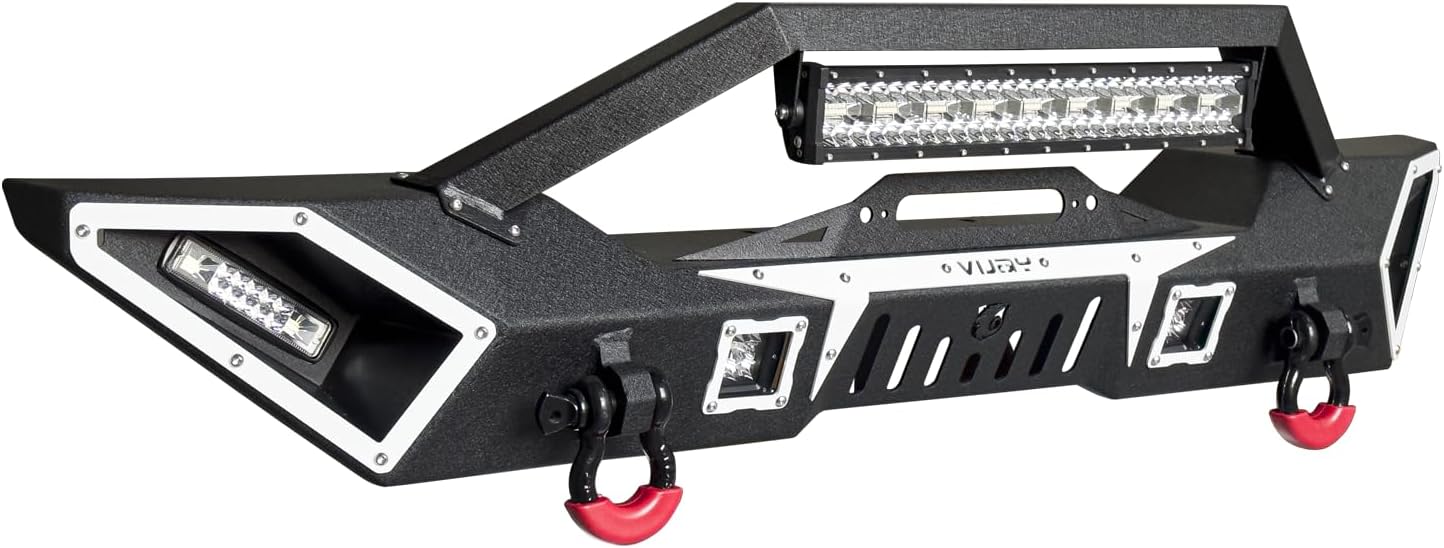 [Professional Focus] [Customer First] [Quality Assurance] Packing list: ★ 1 set of front bumper with winch plate ★ ★ 1x144W LED highlight aluminum light★★4x24W LED highlight aluminum lights★★ 2x4.75T D-ring ★ ★Mounting screws★★Installation instructions ★