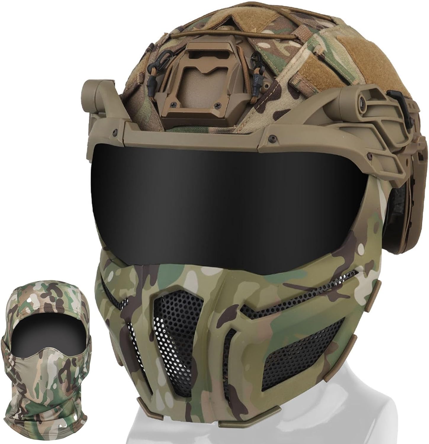 Product Name:FAST Tactical Airsoft Helmet with NVG Mount & Side RailsMaterial:High-Impact Polymer Shell – Strong yet lightweight for enhanced protectionBreathable Padded Interior – Ensures comfort during extended wearAdjustable Strap System – Provides a secure fit for different head sizesKey Features:Impact-Resistant & Lightweight – Durable polymer shell offers protection without weighing you down.Adjustable & Secure Fit – Designed for 53-63 cm head circumference, with a cushioned interior and adjustable straps for maximum comfort.NVG Mount & Side Rails – Allows easy attachment of action cameras, tactical lights, and communication headsets for full customization.Ventilated & Breathable Design – Reduces heat buildup, keeping you cool during intense airsoft or paintball matches.Multi-Purpose Tactical Gear – Perfect for airsoft, paintball, tactical training, outdoor survival games, and cosplay.Suitable For:Airsoft & Paintball Players – Built for action-packed gameplay.Tactical Training & Simulations – Ideal for military-style exercises and drills.Cosplay & Film Production – Authentic design enhances realism for movies and role-playing.Outdoor Survival & Adventure – Reliable protection in extreme environments.Product Specifications:Size – Adjustable fit for 53-63 cm head circumferenceWeight – Approx. 1.2 kg, balancing durability and comfortAdditional Features – NVG mount, side rails for accessory attachments