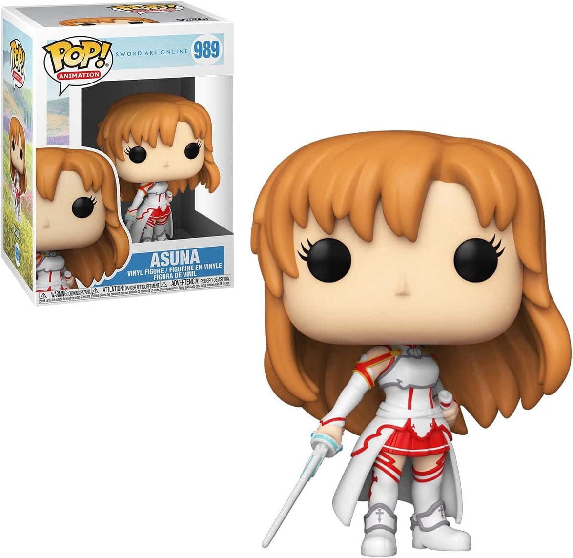 From Sword Art Online, Asuna, as a stylized Pop! vinyl from Funko! Figure stands 3 3/4 inches and comes in a window display box. Collect the entire line of Sword Art Online Funko Pop! Vinyl's: Kirito, Asuna, and Leafa. (Each Sold Separately) Includes a Pop box protector fit for any collectors investment.