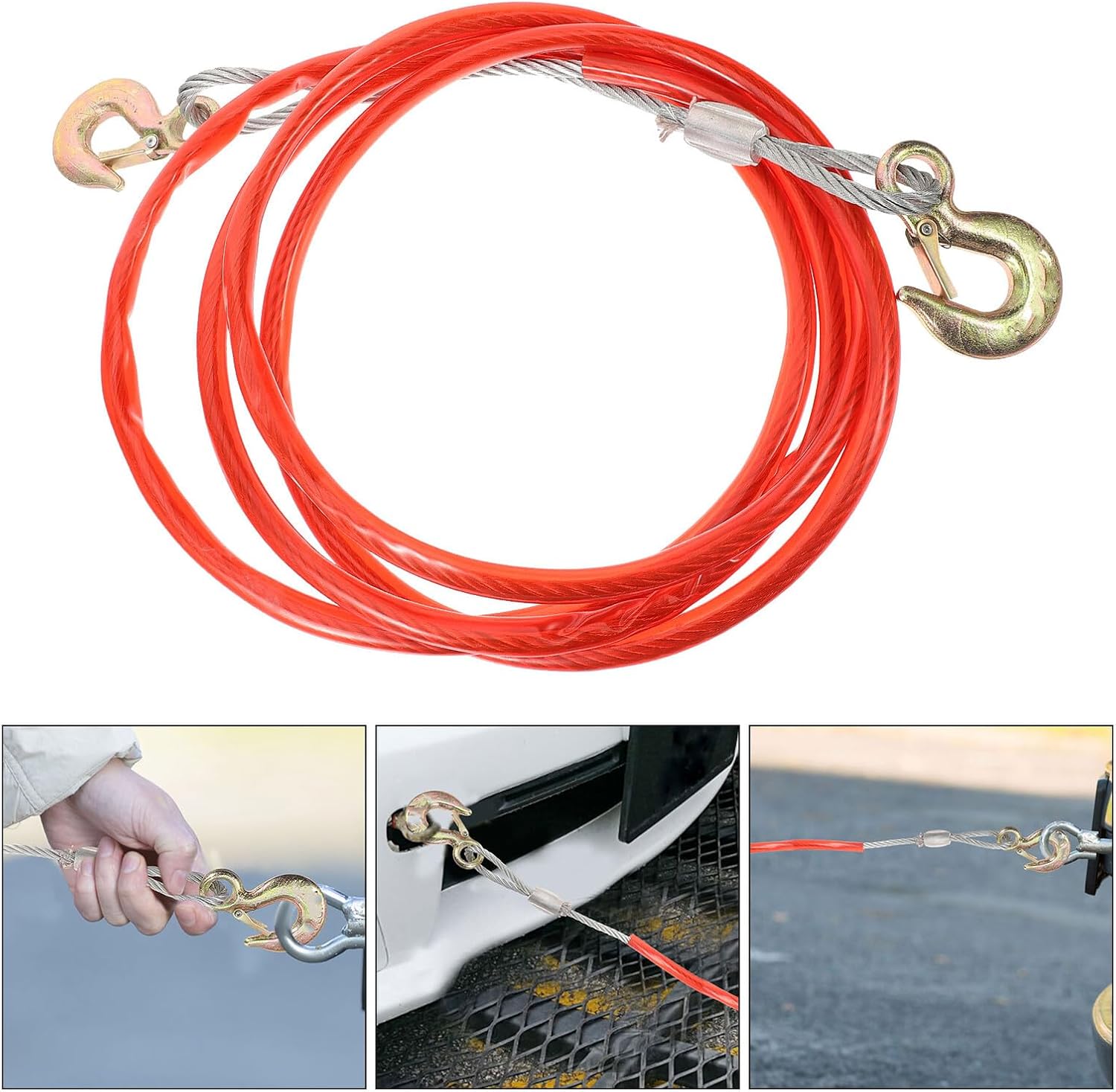 Package List 1 x Tow Cable Features -Material:Steel wire -Color:Red -Product Info:Trailer rope -Size:400.00X6.50X4.00cm/157.20X2.55X1.57in -It can be your good accessory and it can bring you good use experience trailer traction rope. -Enhance the look of your car with this towing rope that is nice as a decorative accessory for your bumper tow cables with hooks. -Towing cable is easy to install, saving you time and hassle as it has a simple structure and hook car pulling rope. -This car tow cable is on proper length, which is very practical to use, and it has good durability to withstand most vehicles car towing rope. -Built to last with steel wire materials that provide strength and reliability for your towing and traction needs.Goods Descriptionvehicle towing cable Not only can it be used for towing cars, it also can be used as a tow cable for boats or some other heavy items.racing tow rope The sturdy materials of this car tow cable ensure durability and peace of mind during towing or traction