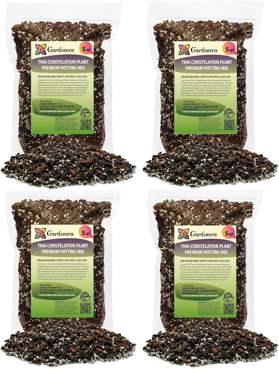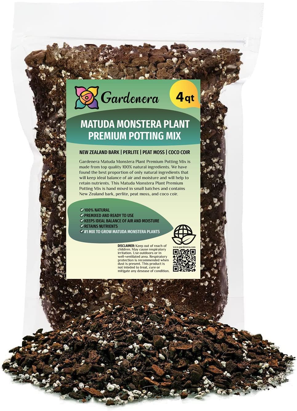 Introducing Gardenera's Thai Constellation Monstera Soil Mix, the ultimate potting solution for plant enthusiasts. Our premium blend features the perfect combination of natural ingredients, including New Zealand bark, perlite, peat moss, and coco coir, providing the ideal balance of nutrients, aeration, and drainage to ensure your Thai Constellation Monstera plants thrive. At Gardenera, we take pride in providing the best soil mixes on the market, and our Thai Constellation Monstera Soil Mix is no exception. Our expertly crafted formula caters to the unique needs of the Thai Constellation Monstera plant, enhancing root development, providing optimal nutrients, moisture, and oxygen, and ensuring healthy growth and development. Our soil mix offers a multitude of benefits, including promoting strong root growth, enhancing aeration and drainage to prevent root rot, retaining moisture for hydrated plants, providing essential nutrients for vibrant foliage and steady growth, and being specially formulated for Thai Constellation Monstera's unique needs. It's the ultimate recipe for success. The Thai Constellation Monstera is a unique and stunning cultivar of the Monstera Deliciosa plant that features green leaves with striking white variegation. This rare plant is highly sought after by collectors and can be a bit finicky to care for. With Gardenera's Thai Constellation Monstera Soil Mix, however, caring for this prized plant has never been easier. Application and care instructions are easy to follow. Simply fill your chosen pot or container with Gardenera's Thai Constellation Monstera Soil Mix, carefully transplant your Thai Constellation Monstera plant, and water thoroughly. Place the plant in a well-lit area, but away from direct sunlight, as too much light can damage the variegation. Mist the leaves occasionally and ensure the soil stays moist but not waterlogged.
