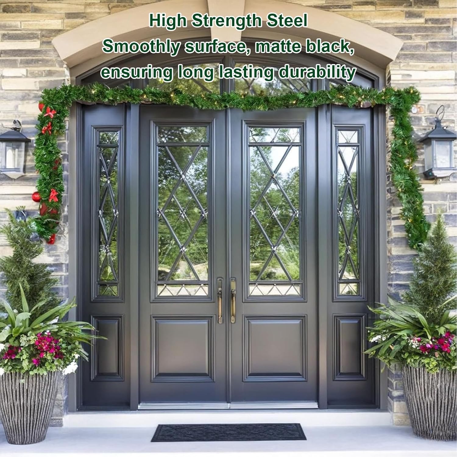Spec: Item Type: Front Door Garland Hanger Material: Steel Telescopic Range: Approx. 80-100cm / 31.5-40in Suitable for Door Width: 31.5-40in Supported Weight: 20lbs How to Use: Directly use. Package List: 2 x Telescopic Hanging Rods 3 x Bracket Clamps 5 x Accessories 1 x Instruction Manual