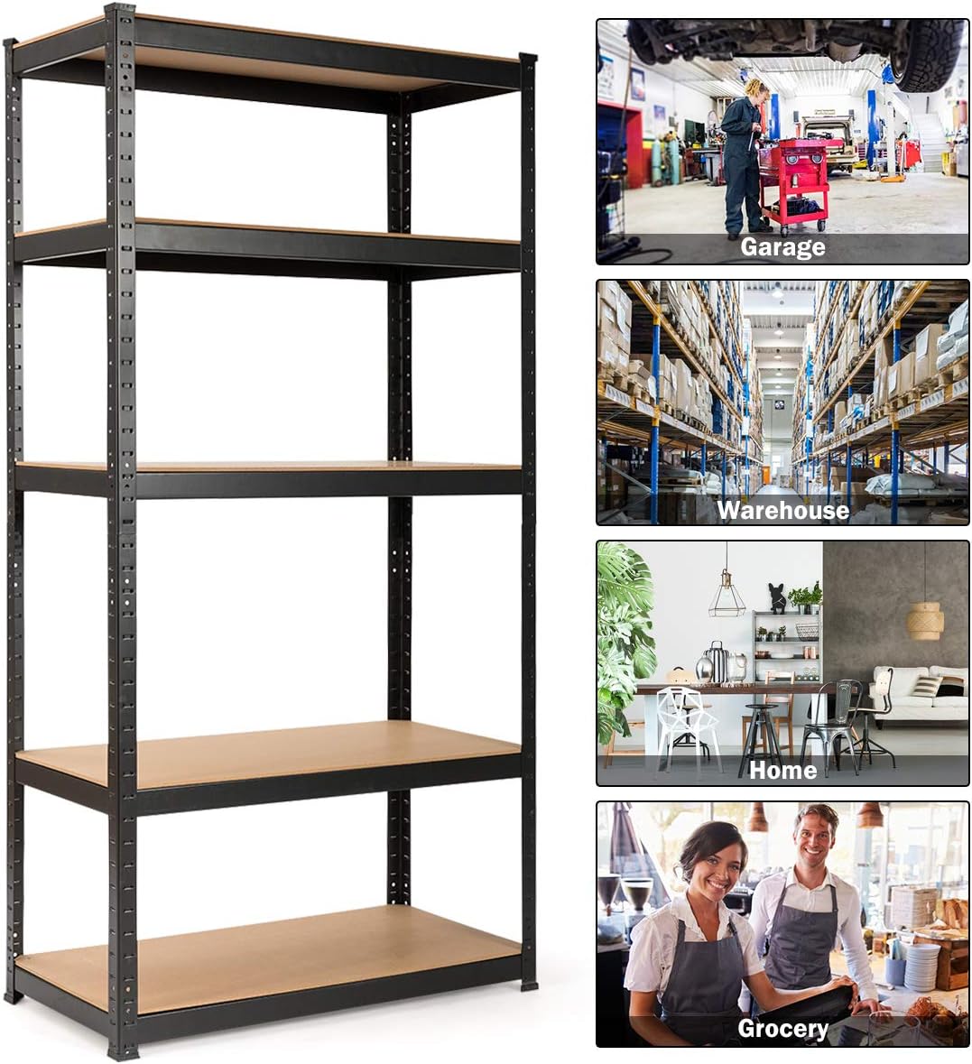 🔧Description🔧:❓Do You Have Much Stuff to Store or Organize?🙋Our Shelving Rack Will Help You A Lot.Home, Office,Warehouse, Garage, Living RoomFiles, OtherOffice Supplies, Kitchen Appliances, CannedGoods, Pantry Items, Garage OrBasement Tools, Seasonal Household Items AndHoliday OrnamentsThis space savingdesign instantly turns space into a neatlyorganized storage center adaptableto your specific needs. It will be yourexcellent choice to buy.Features:Brand new and high quality!Original wood board supported by premium steel frameHeavy duty steel frame Powder coated anticorrosion and anti-rustQuick and easyassemblyA load capacity of 550Lbs per shelf , a total 2750Lbsloading capacityAdjustable heightBig storageSturdy steel frameSpecifications:Color: GrayMaterial: Steel+Original woodOveralldimension:36'' X 18'' X 72''(L X W X H)Thickness of each loadboard: 0.3''Weight capacity ofeach load board: 550LbsPackage including:1 X Rack1 X Instructions