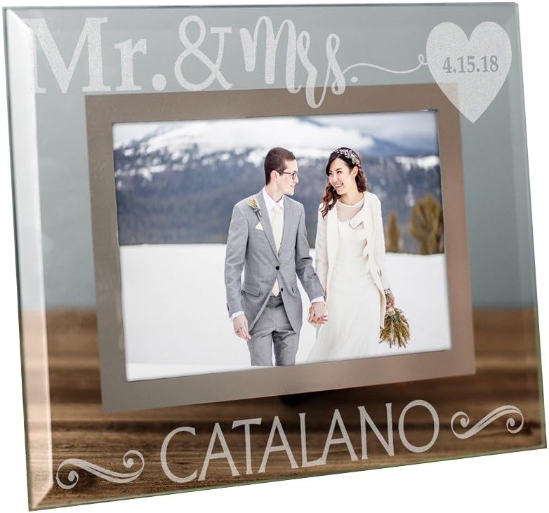 Our Engraved Mr and Mrs Glass Frame is the perfect way to commemorate your special day for years to come! Our Glass Frame will be skillfully engraved with your choice of title, any last name and any date. Personalized Wedding Frames make an elegant gift for any Newlyweds!