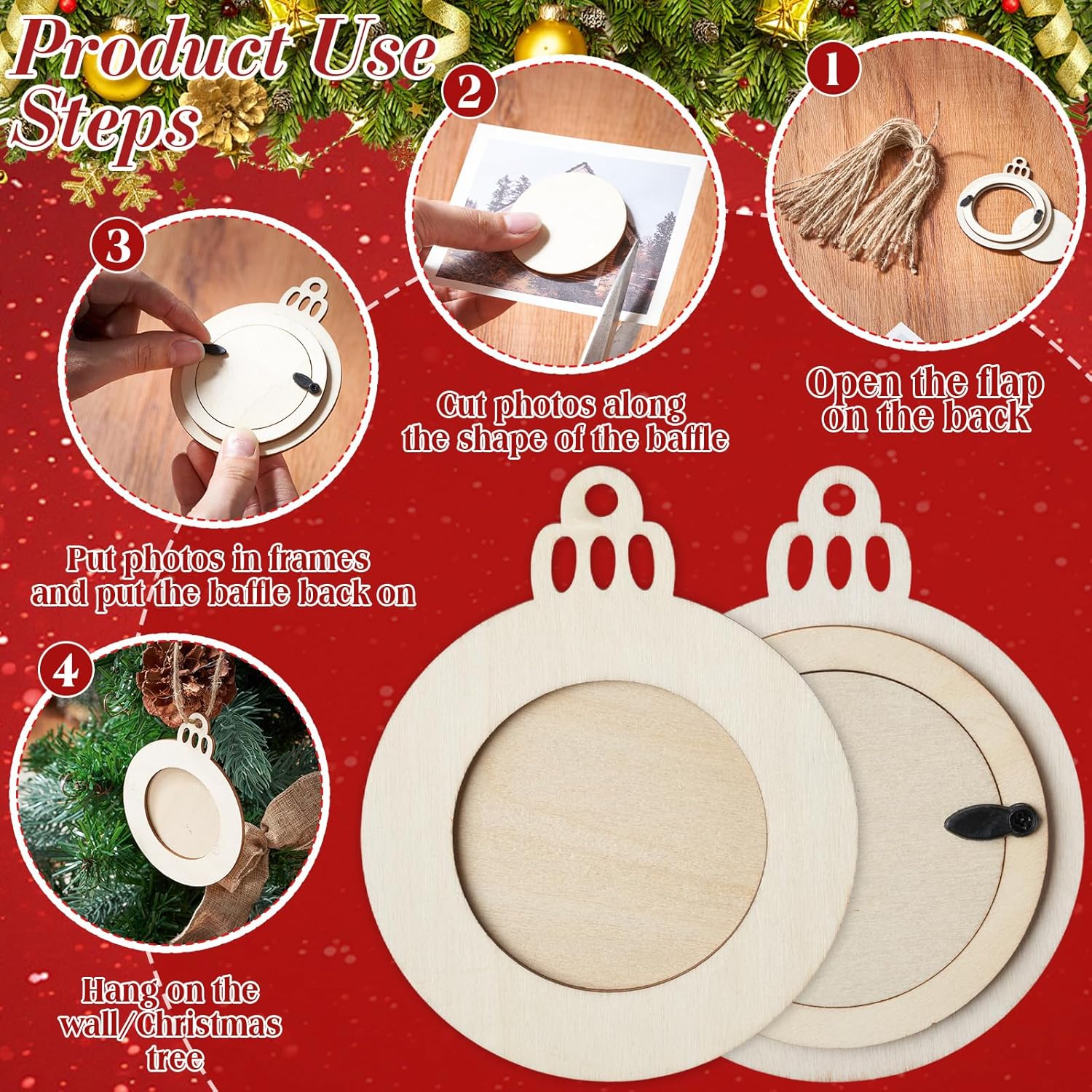Features: Durable and Quality: Our Christmas picture frame craft kit is made of quality wood, with smooth edges and is resistant to damage. You can confidently use these decorations for a long time, showcasing your precious photos and adding highlights to your Christmas tree. Versatile Decoration: These photo Christmas ornaments can be widely applied for Christmas, home, parties, crafts, and gifts. Perfect for hanging on doors, windows, fences, Christmas trees, fireplace mantels, and more, creating a warm and lovely atmosphere. You can also add DIY names, and patterns to the frames to create unique gifts for your loved ones. Everyone will love these meaningful and cute Christmas gifts. Specifications: Material: high-quality wood Color: natural wood color Size: about 10 x 8 x 0.6cm/4 x 3 x 0.3inch and an inner frame diameter of 5cm/2-inch Package includes: 30 x Wooden Christmas photo frames 1 Bundle of hemp rope Notes: Manual measurement, please allow slight errors on size. The color may exist a slight difference due to different screen displays.