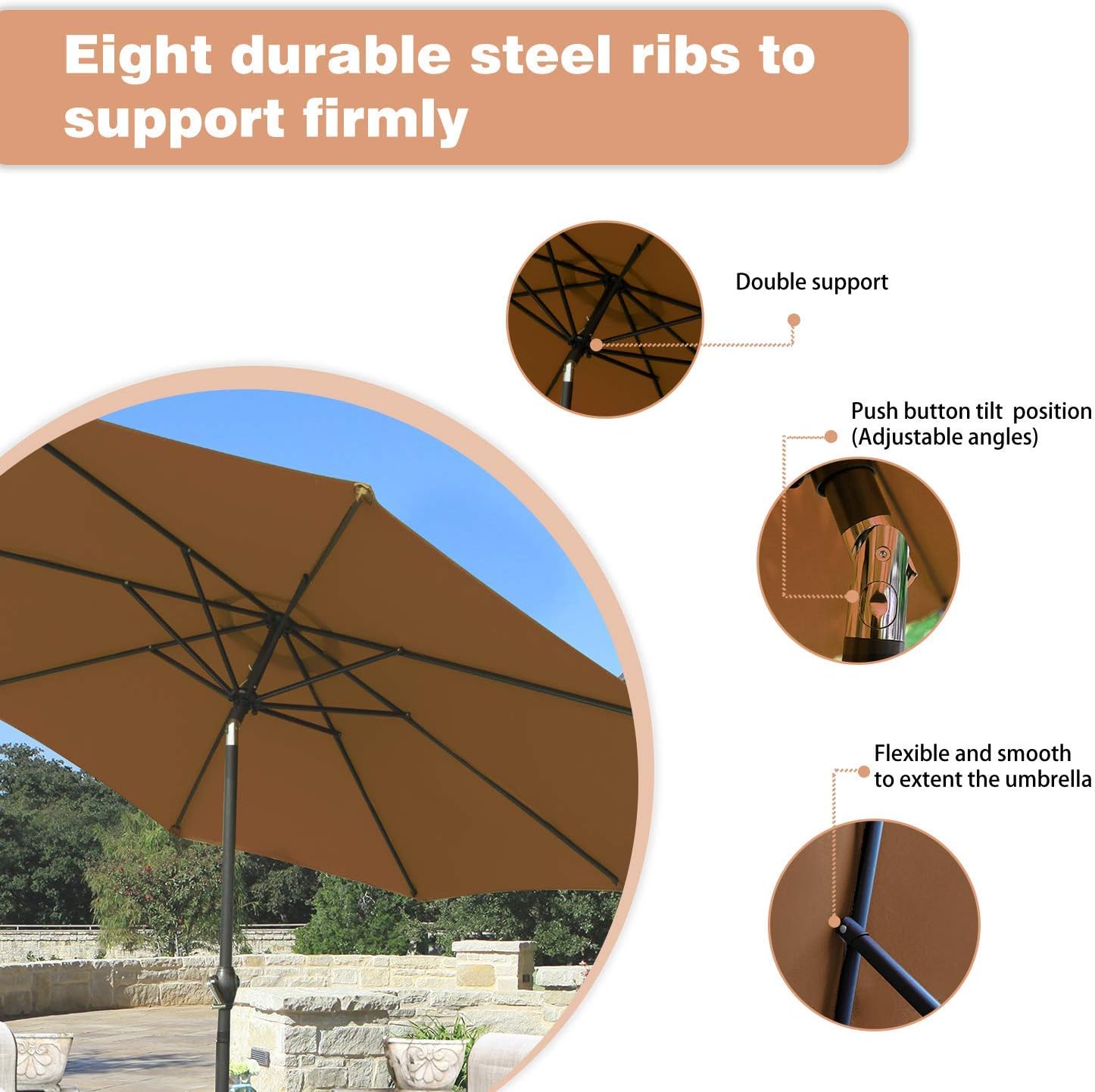| Model Name | Greesum 9' Patio Market Umbrella Outdoor Table Umbrella with 8 Sturdy Ribs,Puch Button Tilt,Brown |