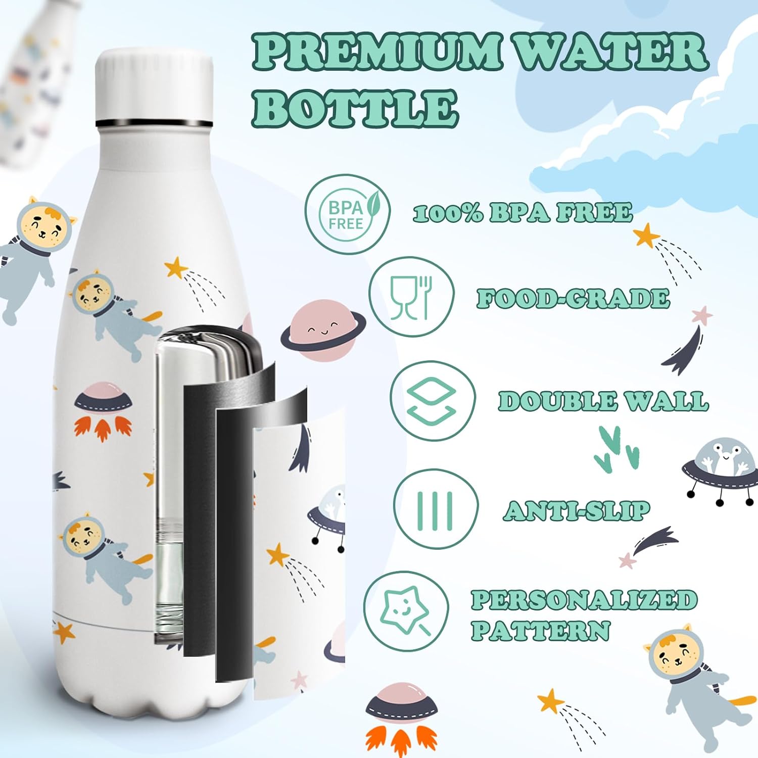 This thermos bottle is available in different colours and patterns and can meet children's daily water needs. The 350 ml stainless steel drinking bottle is made of 18/8 stainless steel, is 100% leak-proof, easy to clean, lightweight and exquisite, so you can easily take it with you. The Grsta drinking bottle also has a unique painted design, the pattern is clear and does not fade so quickly. It will become a daily companion for you and your children