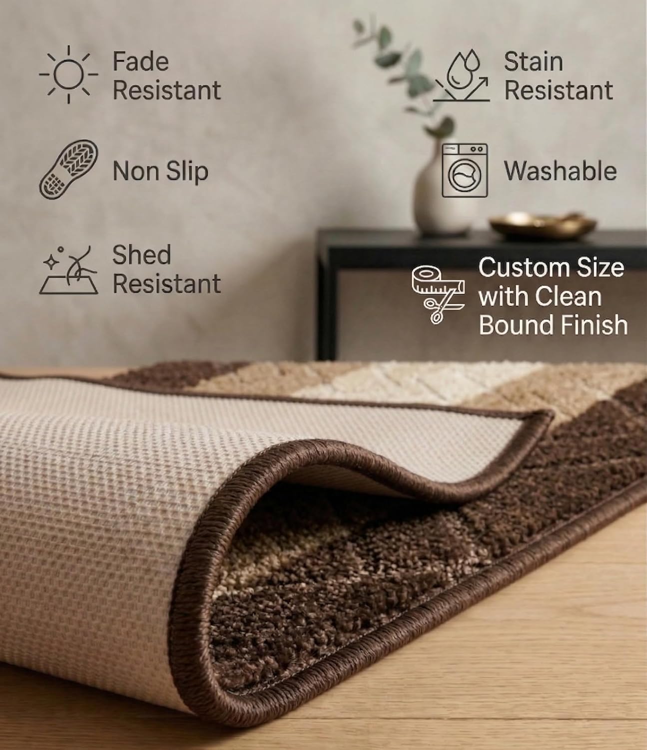 All our custom size products are cut and finished in the USA. BestHomeDeals specializes in creating custom sized runners for your home. You can choose one of our premium quality runners and we can make it to your length choice and width choice (fixed) from the drop down menu. Runner rugs can be used in hallways, kitchens , entry etc. These slightly carved runners look so elegant due to quality of the material used and the artisian craftsmanship. Our skid resistant rubber backing resists slips and lowers chance of accidents caused by slippery floors. Best for floor types such as hardwood, marble, stone etc. Carpet on carpet tape or pad is required for application on carpet or fabric surface. We recommend measuring your space before placing your order in order to prevent any inconveince and delay. Indoor use only. Simple Care: MACHINE WASHABLE we recommend washing in like warm or cold then hang to air dry
