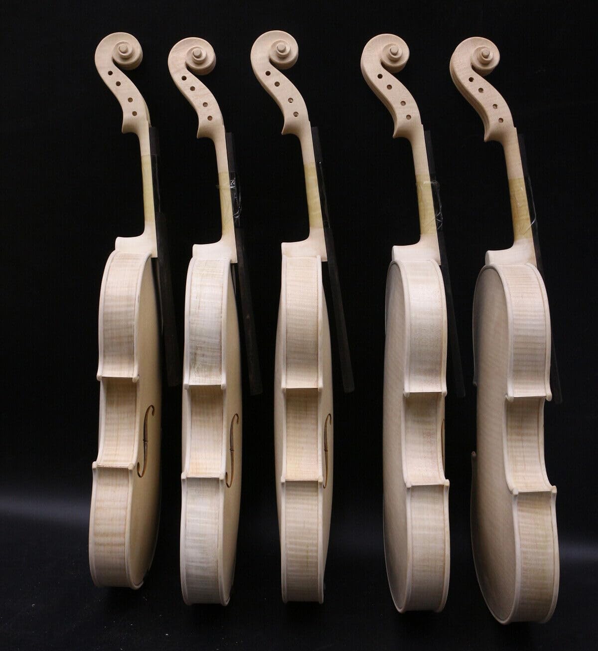 Handcrafted Unvarnished (White) Violins - Master Grade Each violin is a unique work of art, meticulously handcrafted by our luthiers with over 20 years of experience. We use only premium, naturally air-dried flamed maple to ensure superior tonal quality and stability. About the Backs: Wood & Figure: All instruments feature a high-quality flamed maple back. The character of the flame can vary from a tight, close grain to a bold, wide grain, catering to different aesthetic preferences. Regardless of pattern density, the material grade is consistently top-tier. Construction Styles: We offer two distinct back constructions: One-Piece Back: Carved from a single, select piece of flamed maple for a seamless, dramatic appearance. Two-Piece Back: Expertly joined at the center for perfect symmetry and balanced resonance. Please Note: As each piece of flamed maple is unique by nature, the actual instrument may show slight variations from the product images. This natural variation in wood grain means every unvarnished violin is truly one-of-a-kind. Rest assured, all materials meet the same high standard of craftsmanship and quality.