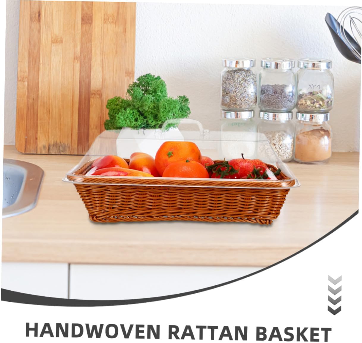 Package List 1 x rattan storage basket Features -Product Info: rattan storage basket -Material:Acrylic, rattan -Size:40.00X30.00X15.00cm/15.72X11.79X5.89in -Lid for freshness: the basket includes a lid that prevents dust, keeping your food fresh and suitable for both indoor and outdoor use table basket -Portable convenience: lightweight and easy to carry, it is ideal for taking to parks or beaches, making outdoor picnics more enjoyable and convenient farmers market basket -Rattan storage basket: crafted with fine rattan weaving, it enhances your home decor with a natural and appealing look, adding a touch of rustic beauty rattan fruit basket -Color:Multi -Rattan basket: suitable for kitchen use, dining table display, and outdoor picnics, this basket fulfills a variety of storage needs, making it a versatile choice fruit basket bin -Efficient storage: this basket is an excellent solution for organizing household items, helping to create a neat and orderly living environment hand-woven fruit basketGoods Descriptionbakery bread basket Designed for convenience, this multipurpose basket serves as a stylish food tray or storage bin.serving bread basket The handwoven craftsmanship ensures durability, while its lightweight design allows for easy portability.woven bread baskets Use it to display baked goods, organize kitchen essentials, or carry items for outdoor gatherings effortlessly