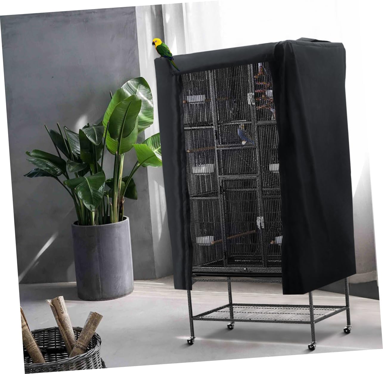 Package List 1 x bird cage cover Characteristics - Size: 122x104x69cm cage cover. - Material: Cotton breathable cage cover. - Color: Black. - The edges of the bird cage cover are neatly seamed for a finished look pet accessories. - Our cage cover is large and loose fitting bird cage cover. - Choose one and it can reduce distractions and in better for your bird pet supplies. - It features a flap that falls over the cage door and allows cage door access without removing the cover. - It adopts breathable, and natural cotton for and use.Goods Descriptionbird cage cover It features a flap that falls over the cage door and allows cage door access without removing the cover.breathable cage cover Choose one and it can reduce distractions and in better for your bird.pet supplies Our cage cover is large and loose fitting.pet accessories Besides, it adopts breathable, and natural cotton for and use